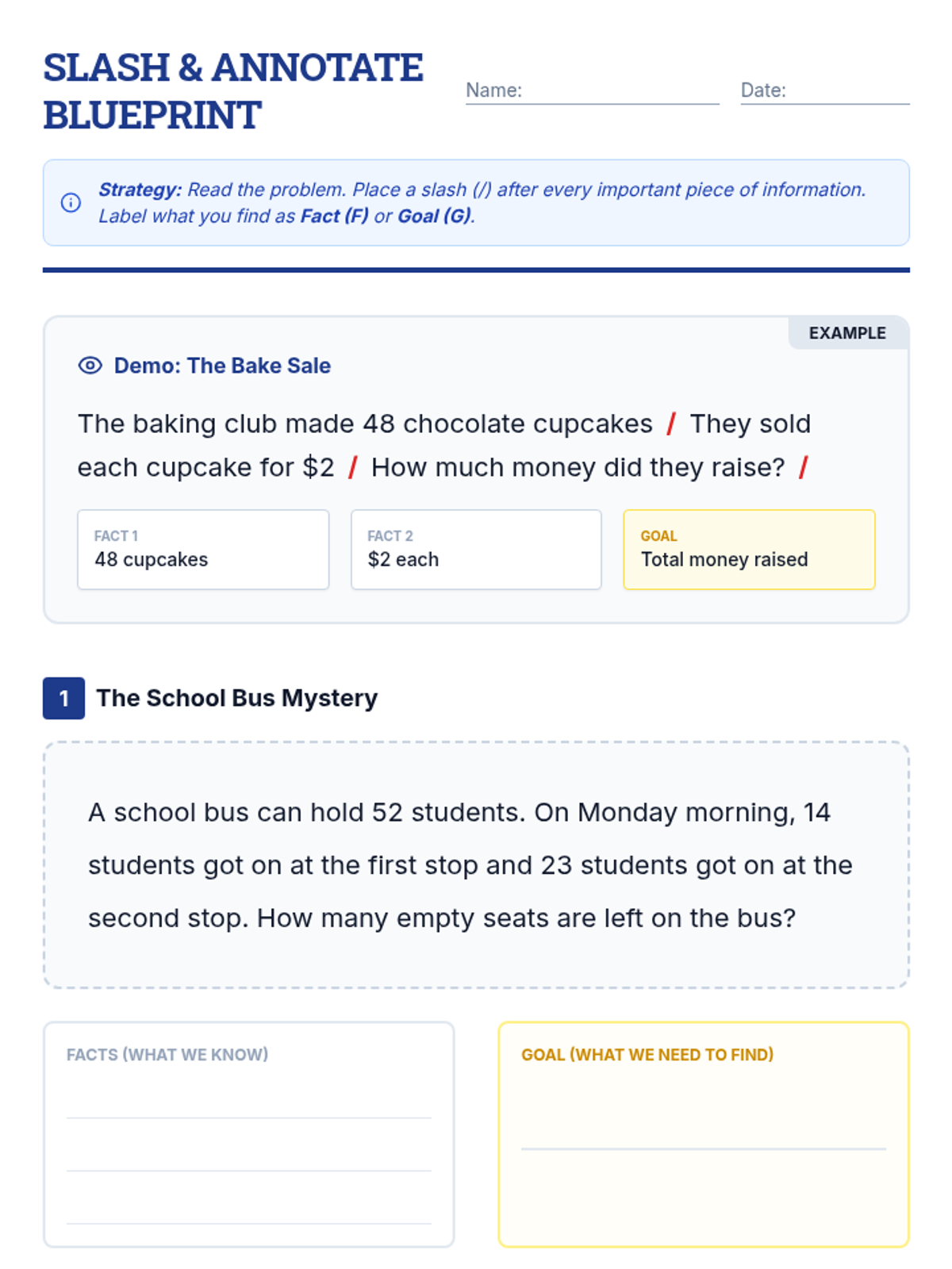 This sequence teaches 5th-grade students with executive function needs how to break down complex, multi-step math word problems. Using a blueprint-inspired design, students move from annotating text to identifying hidden questions and flowcharting logic before final execution.