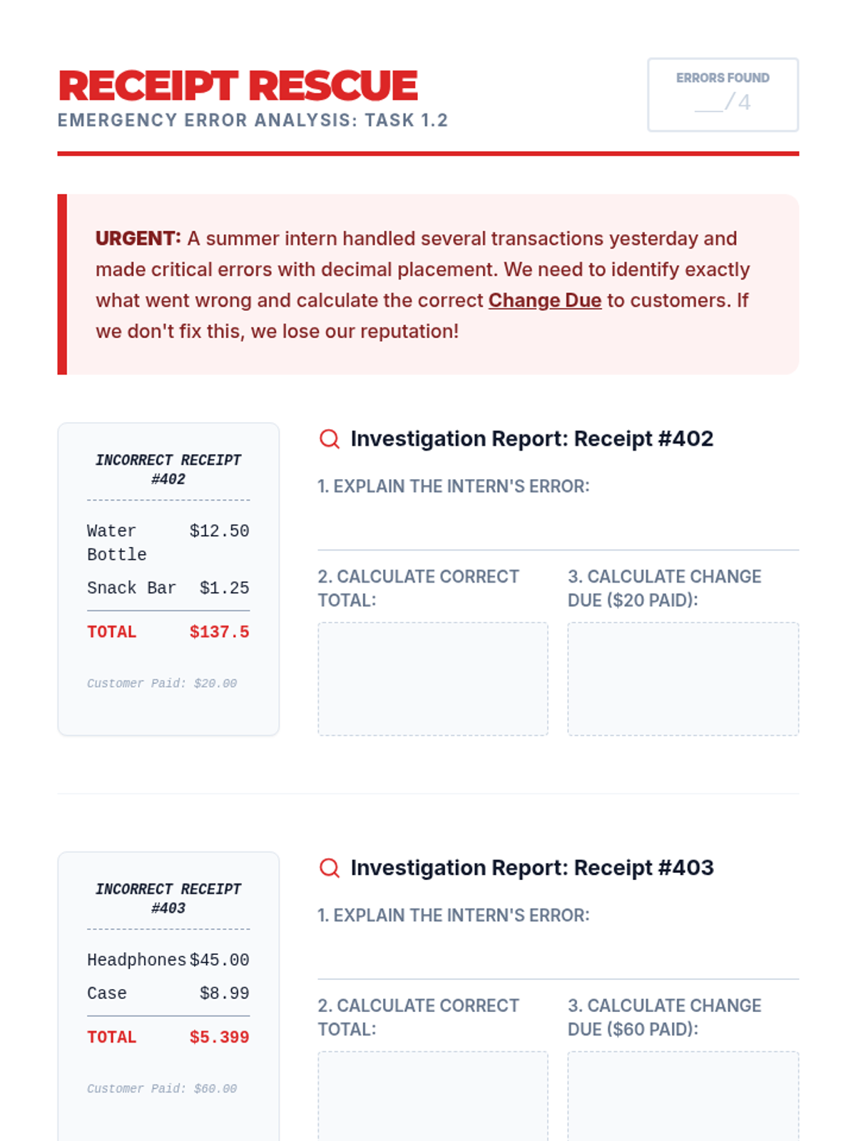 A 5-lesson unit where students master multi-digit decimal operations by running a simulated small business, from inventory management to final profit reporting.