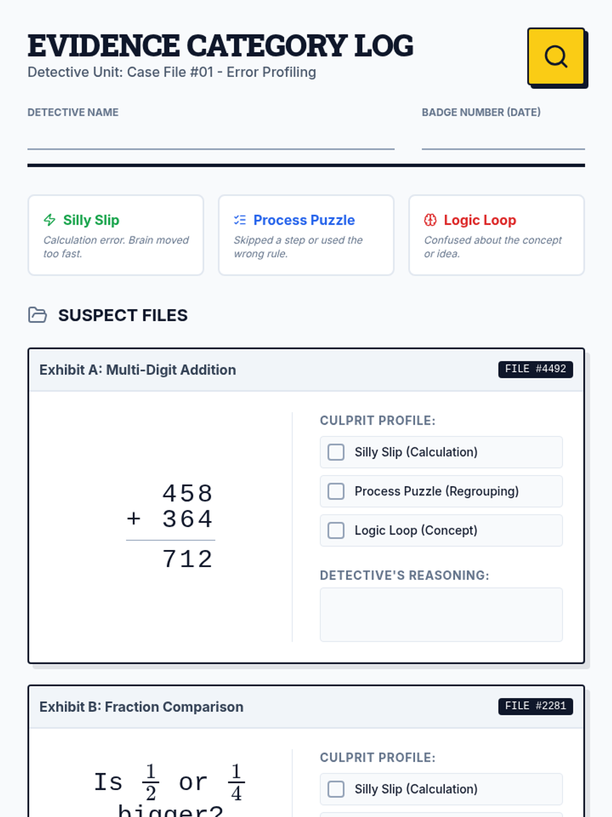 This 5th-grade sequence transforms math error analysis into a 'Math Detective' investigation. Students move from categorizing types of mistakes to reverse-engineering flawed logic and creating personalized self-correction guides, fostering metacognitive awareness and a growth mindset.