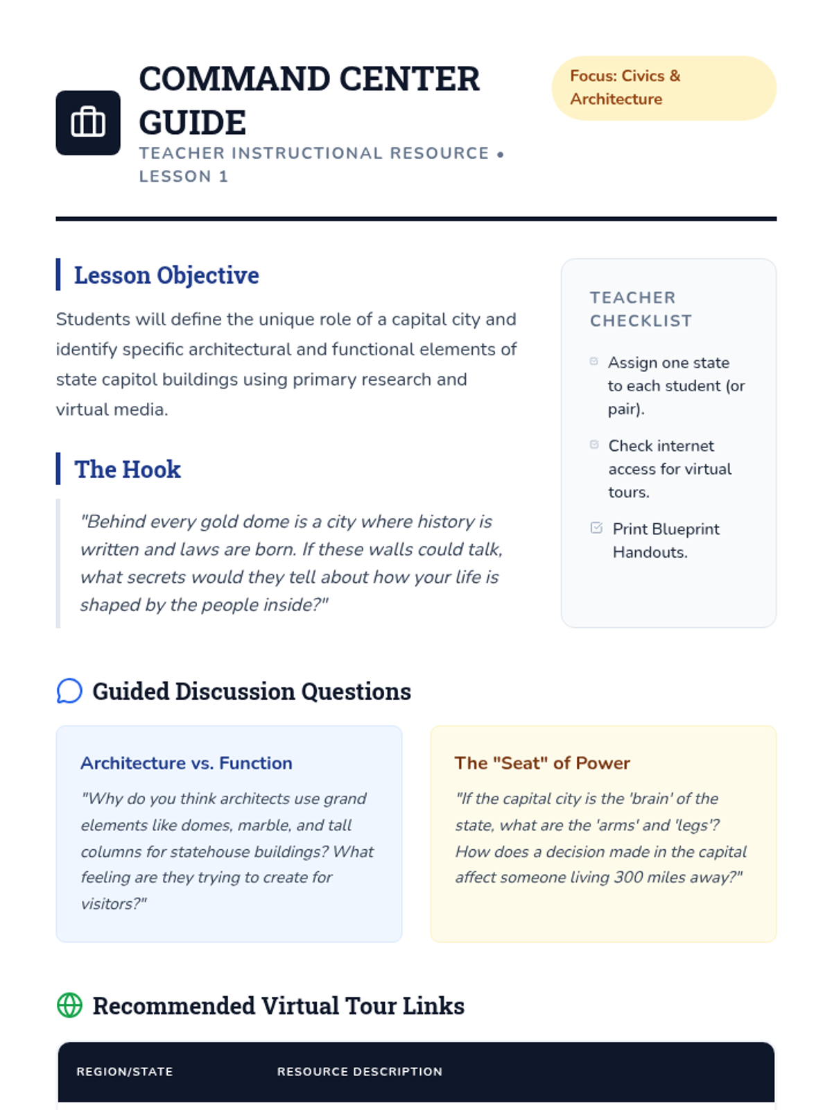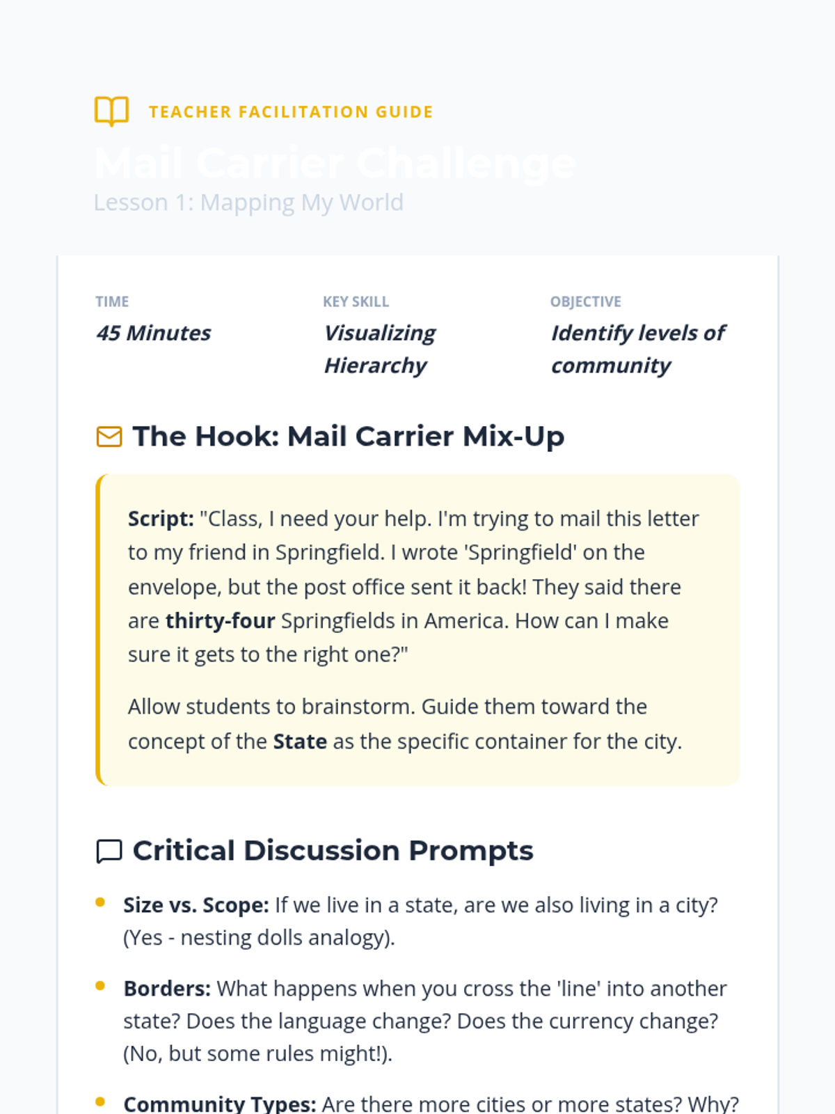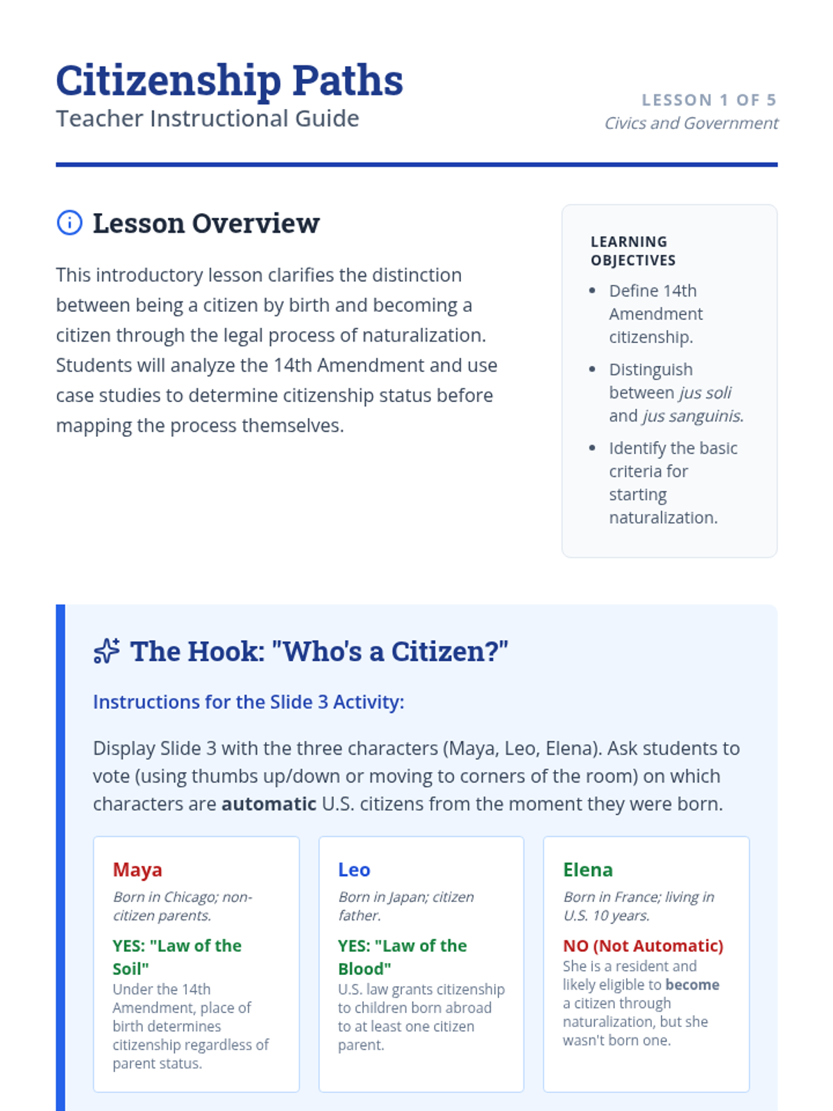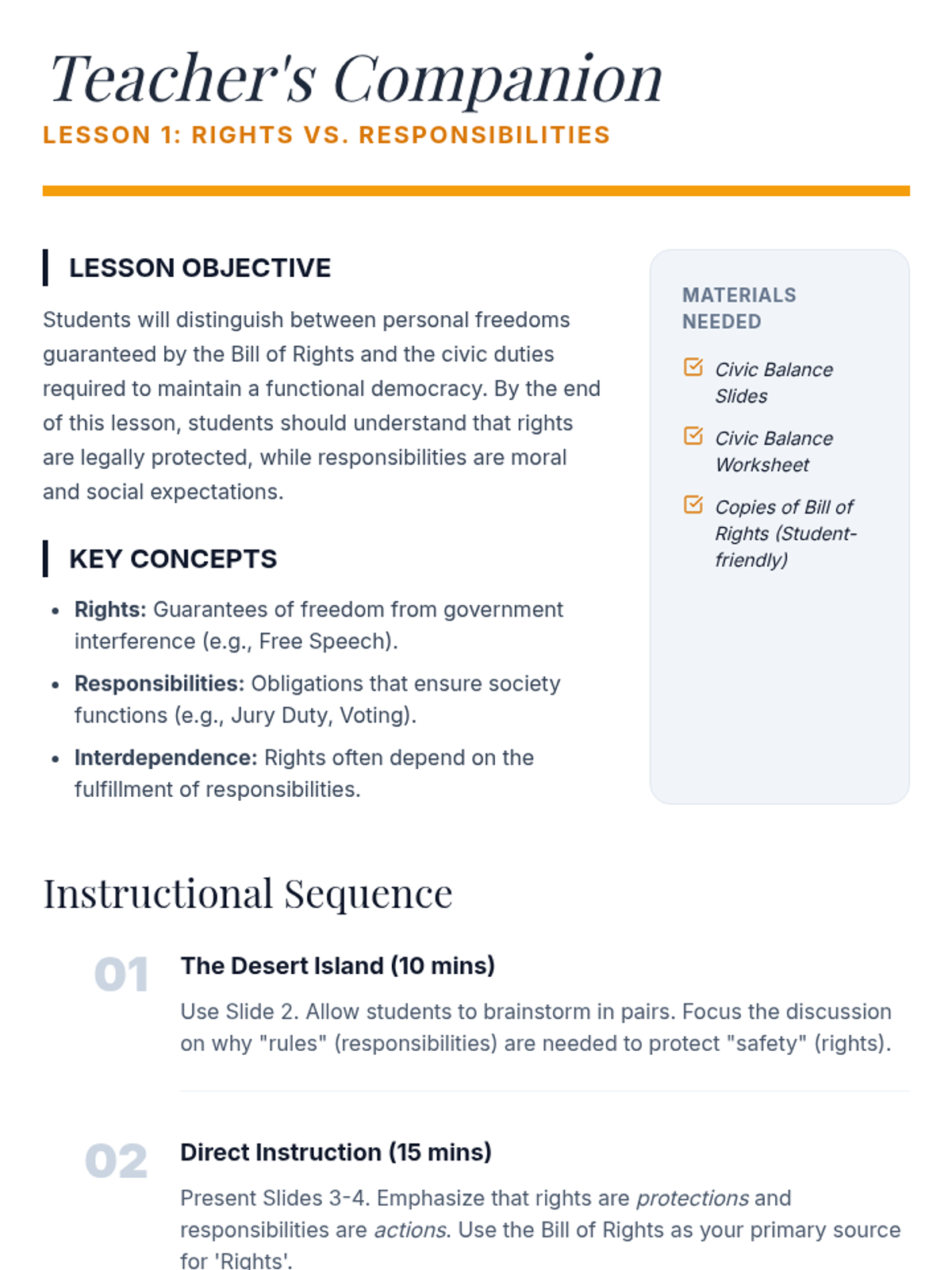 Lesson One Teacher Guide