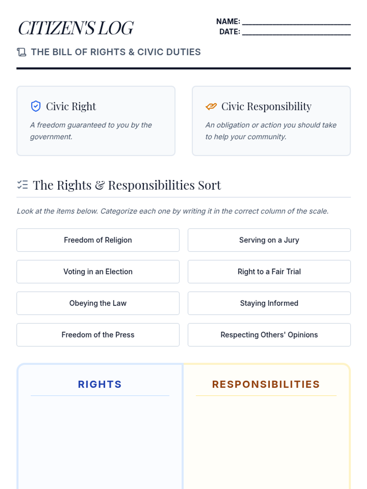 A comprehensive guide to the Bill of Rights designed for different learning needs. Students explore the first ten amendments through visual planning, vocabulary building, and a creative poster project.