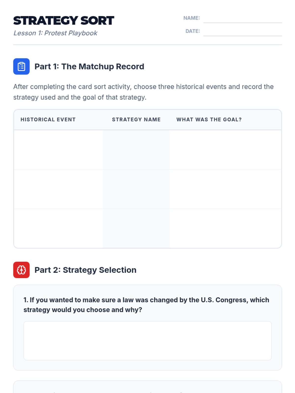 Protesting for Change Worksheet