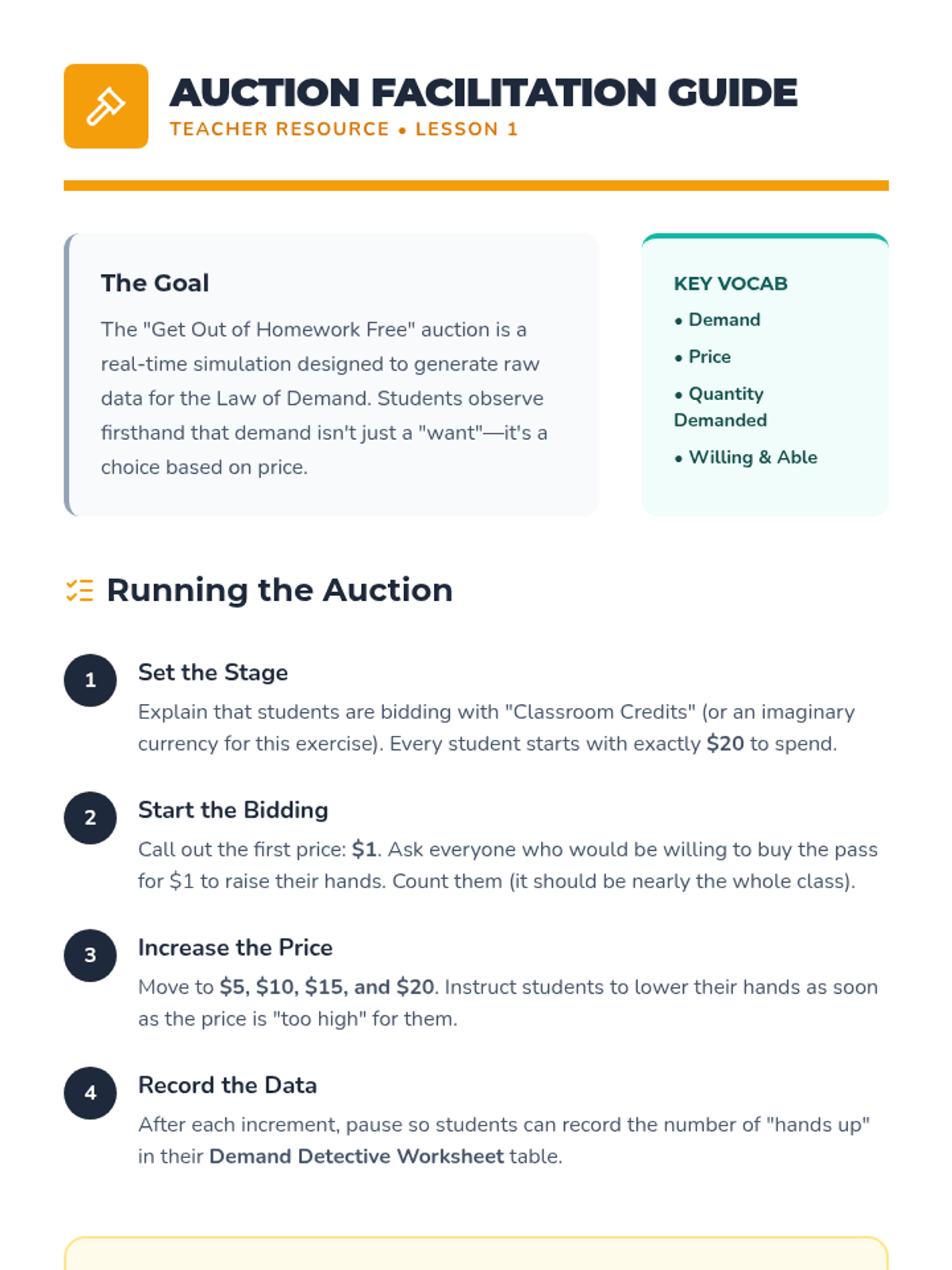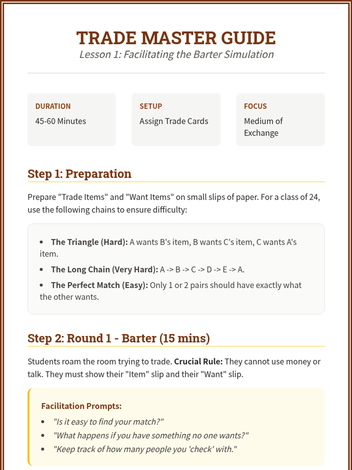 This sequence explores the mechanics of supply and demand through simulations and case studies. Students progress from understanding the limitations of barter to using currency, and finally participate in a full market simulation to see how prices reach equilibrium.
