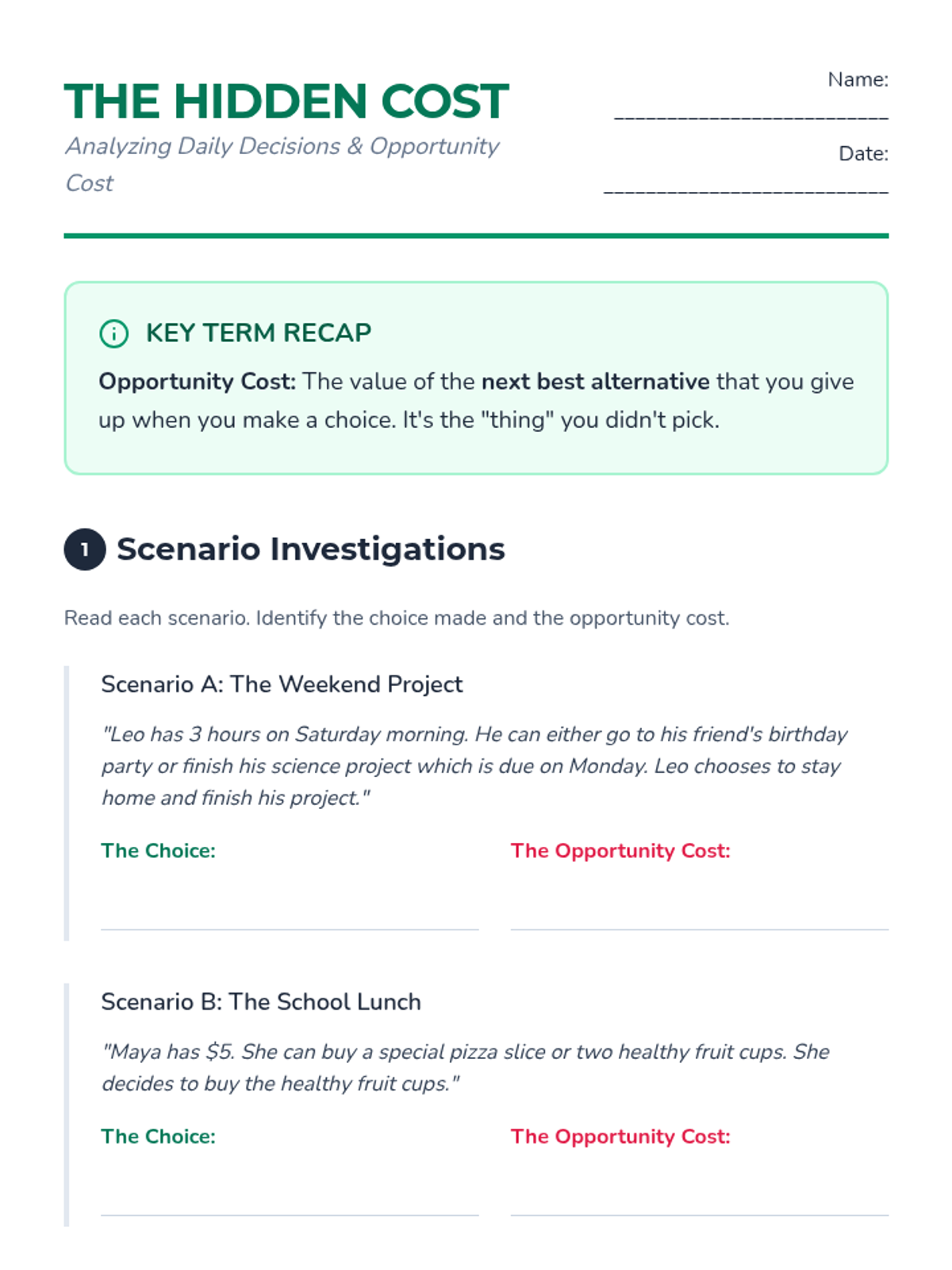 Students navigate a simulated classroom economy to learn budgeting, opportunity cost, and the difference between needs and wants through games and real-world scenarios.