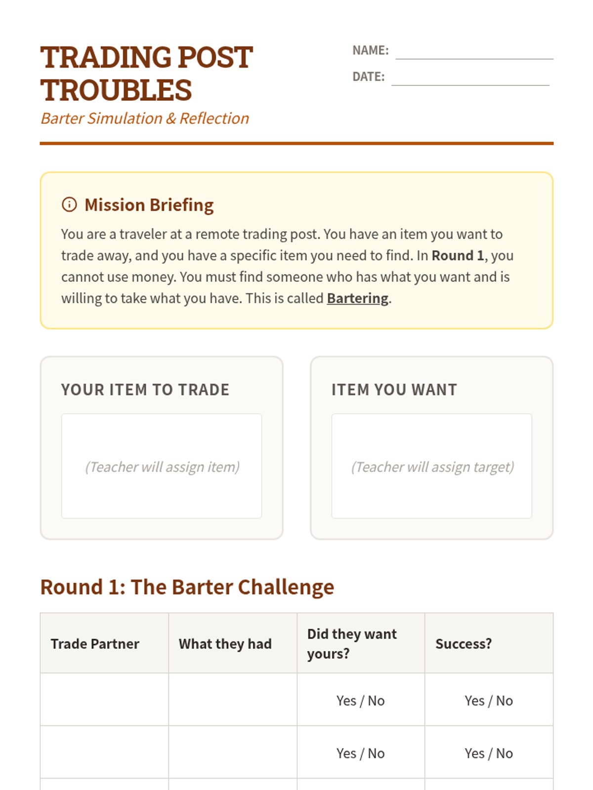 A macroeconomic exploration for 5th graders, covering the transition from barter to currency, the causes of inflation, the role of central banks, and global exchange rates. Students engage in simulations to understand why money has value and how economic stability is maintained.