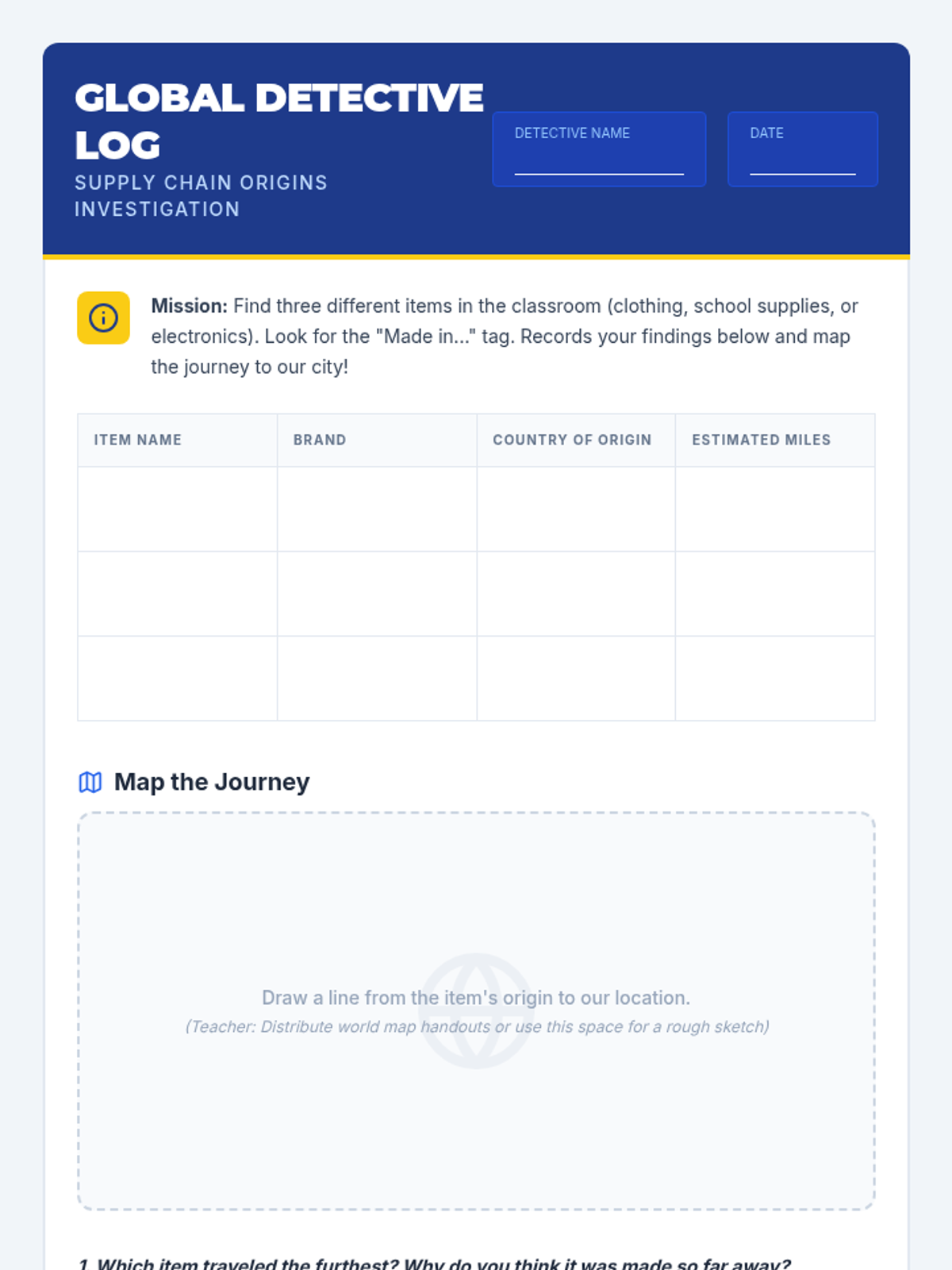 Students explore economic inequality and global trade by tracing the supply chains of everyday objects. They analyze how wealth is distributed among producers, manufacturers, and retailers, culminating in the design of a 'fair trade' product model.