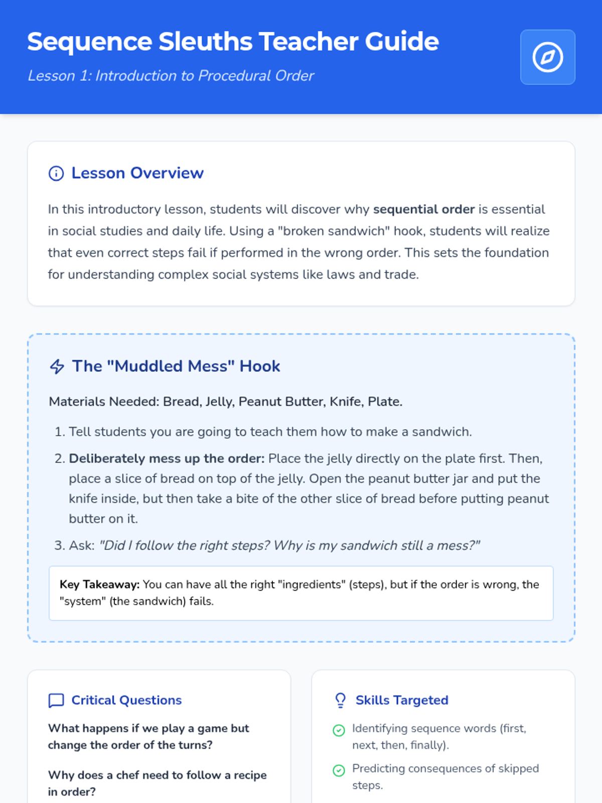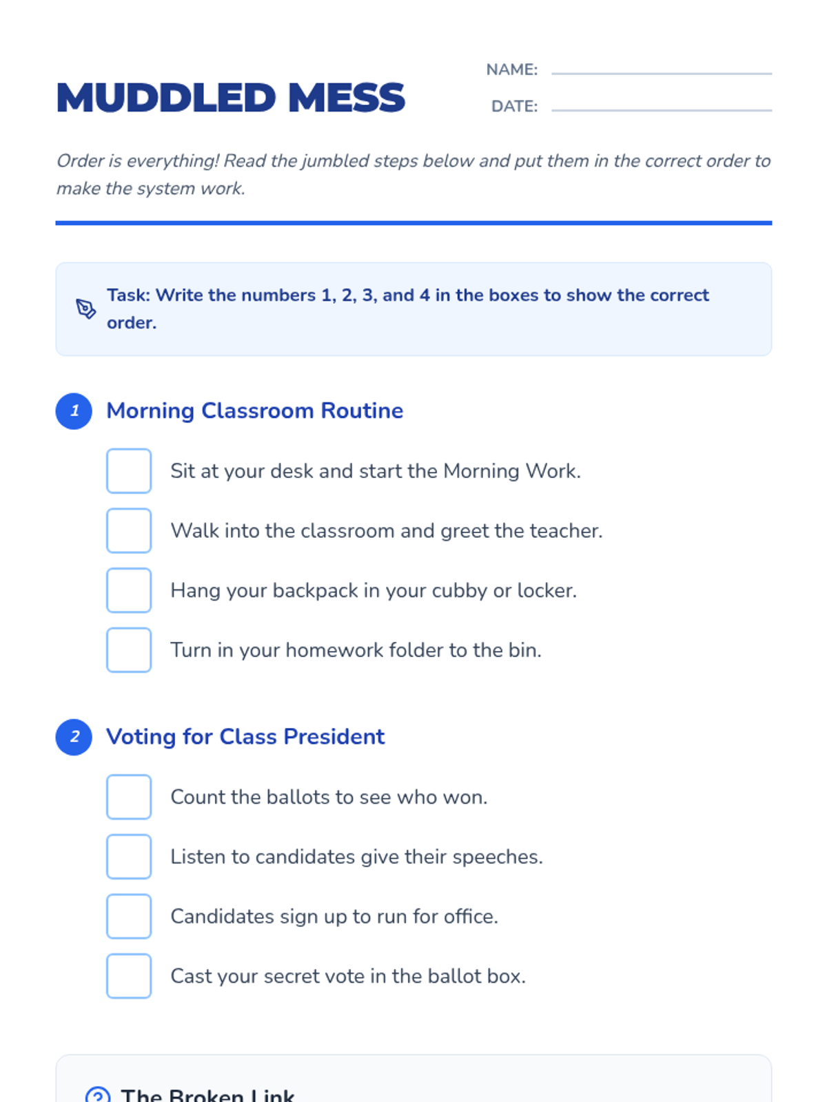 This sequence bridges social studies and procedural thinking, teaching students to analyze and design multi-step processes in government, economics, and daily life. Through simulations and case studies, students learn why the order of events is critical for fair and effective systems.