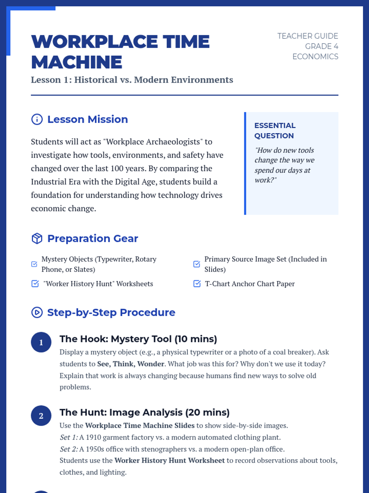 A 13-day journey through modern American history, from the Industrial Revolution to the present day, focusing on key historical figures and major conflicts as outlined in the 5th Grade TEKS. Each lesson is designed for a quick 30-minute block, integrating multimedia and primary source analysis.