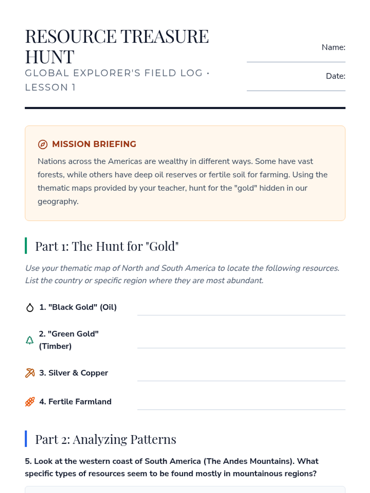 A 5th-grade geography unit exploring the link between natural resource distribution in the Americas and global economic systems, featuring map analysis, trade simulations, and a case study of the Panama Canal.