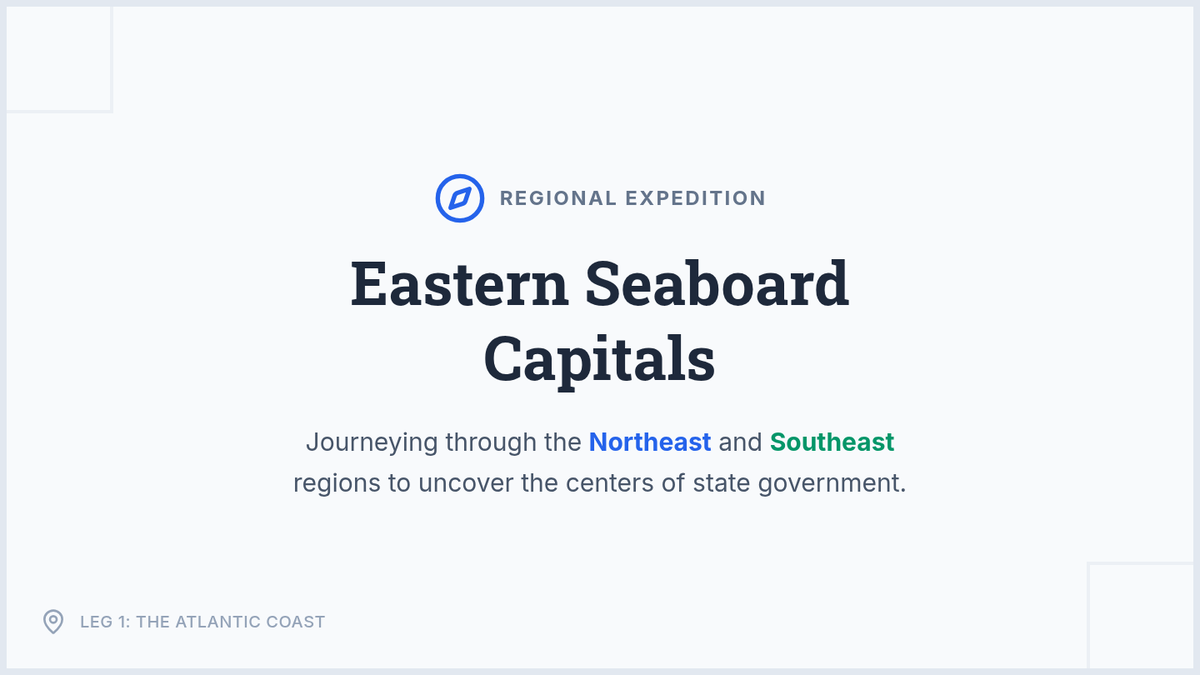 State CapitalsIdentification and location of the fifty U.S. state capitals within their respective regions. Connects administrative centers to geographic landmarks and historical development.