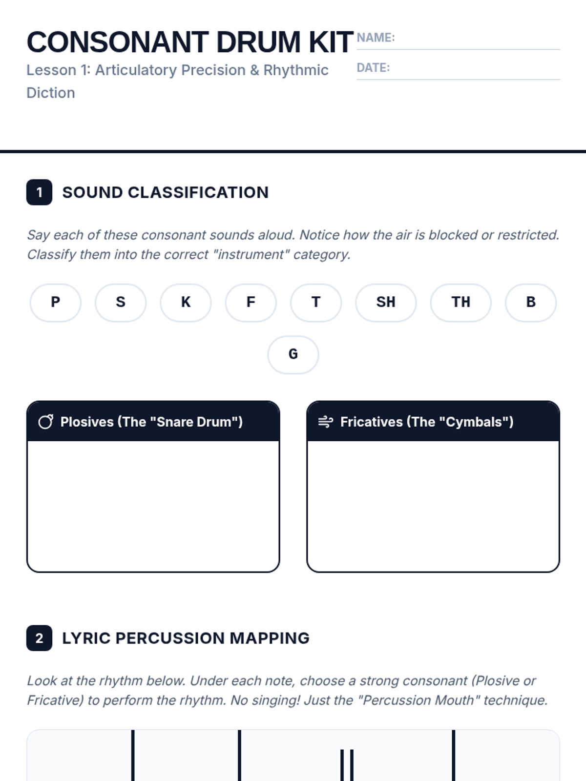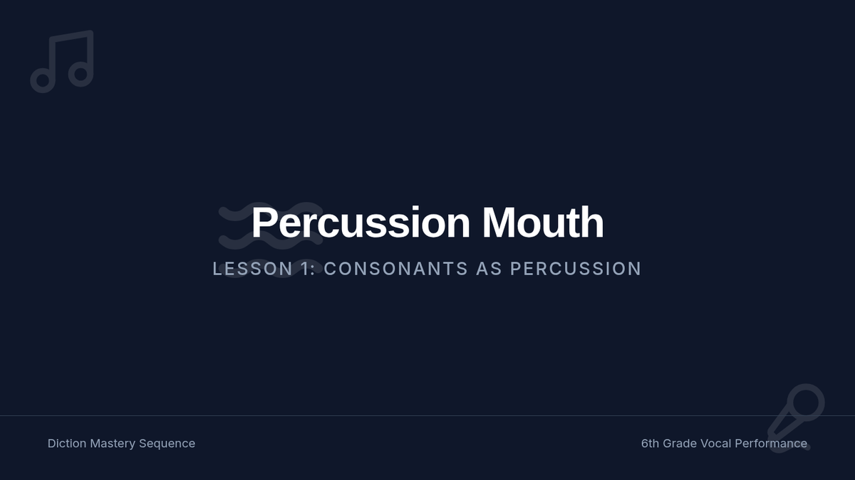 A comprehensive sequence for 6th-grade singers focusing on articulation and diction. Students progress from using consonants as rhythmic tools to mastering pure vowels, diphthongs, and the International Phonetic Alphabet (IPA).