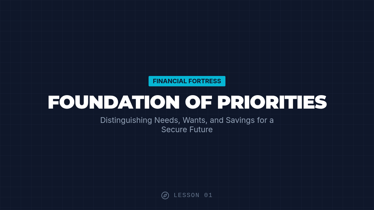 A comprehensive financial literacy sequence for 6th graders focusing on building a 'Financial Fortress' through needs/wants analysis, emergency funds, SMART goal setting, and banking basics. Students move from basic spending concepts to creating a personalized savings strategy for long-term security.
