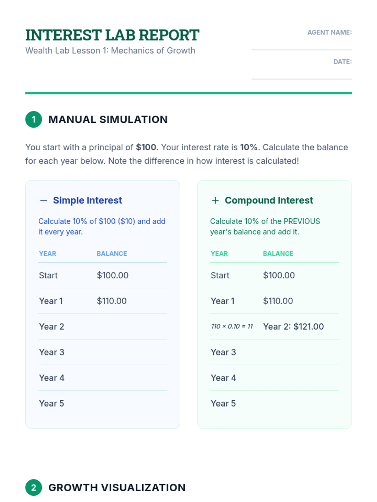 A 4th-grade financial literacy unit that demystifies compound interest through hands-on simulations, mental math challenges, and visual metaphors. Students discover how time and interest rates work together to grow wealth while learning to protect their savings from inflation.