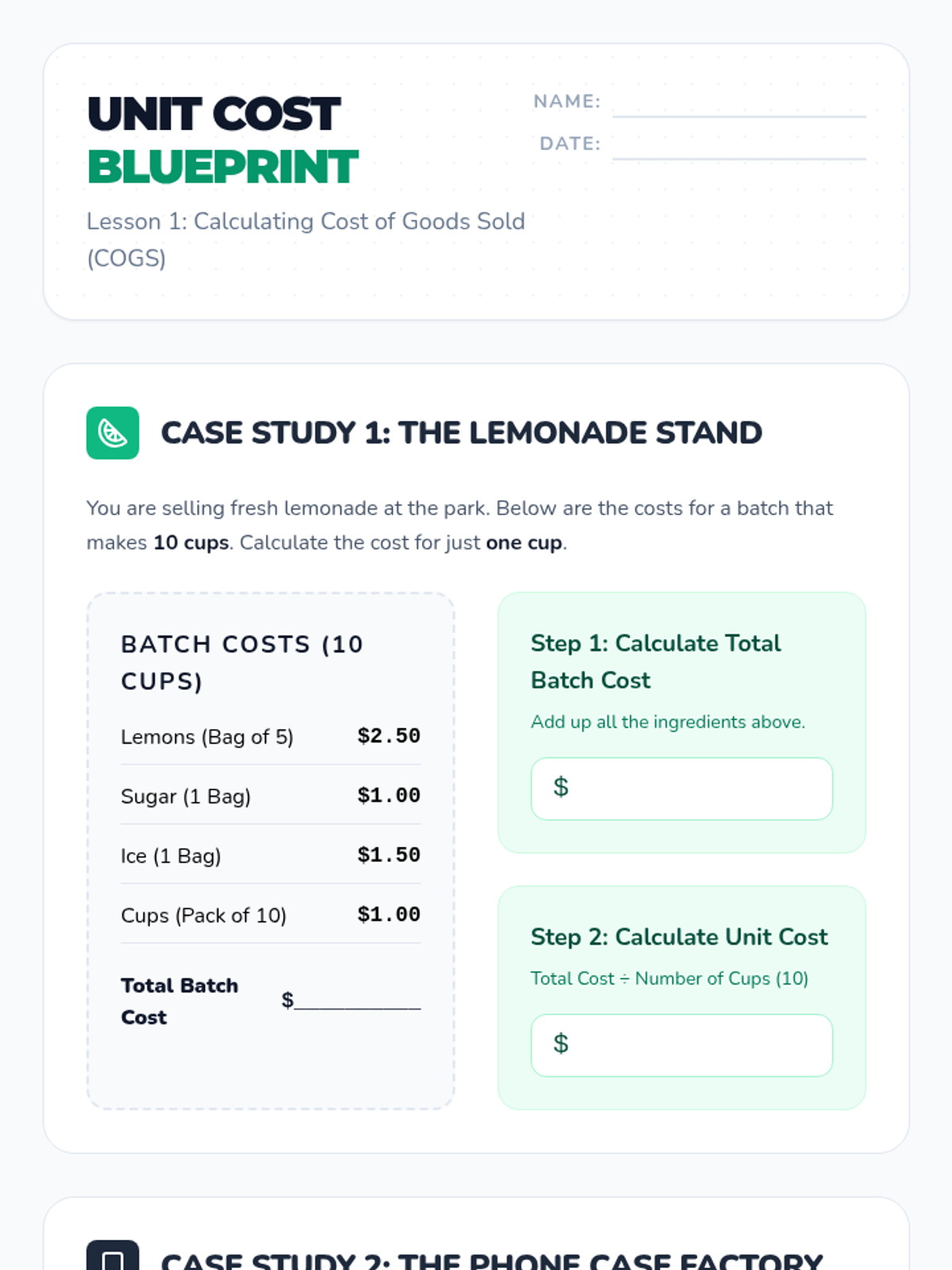 A 6th-grade sequence focused on the financial literacy of entrepreneurship. Students learn to calculate unit costs, distinguish between fixed and variable expenses, set strategic prices, find their break-even point, and project profits for a sustainable business model.