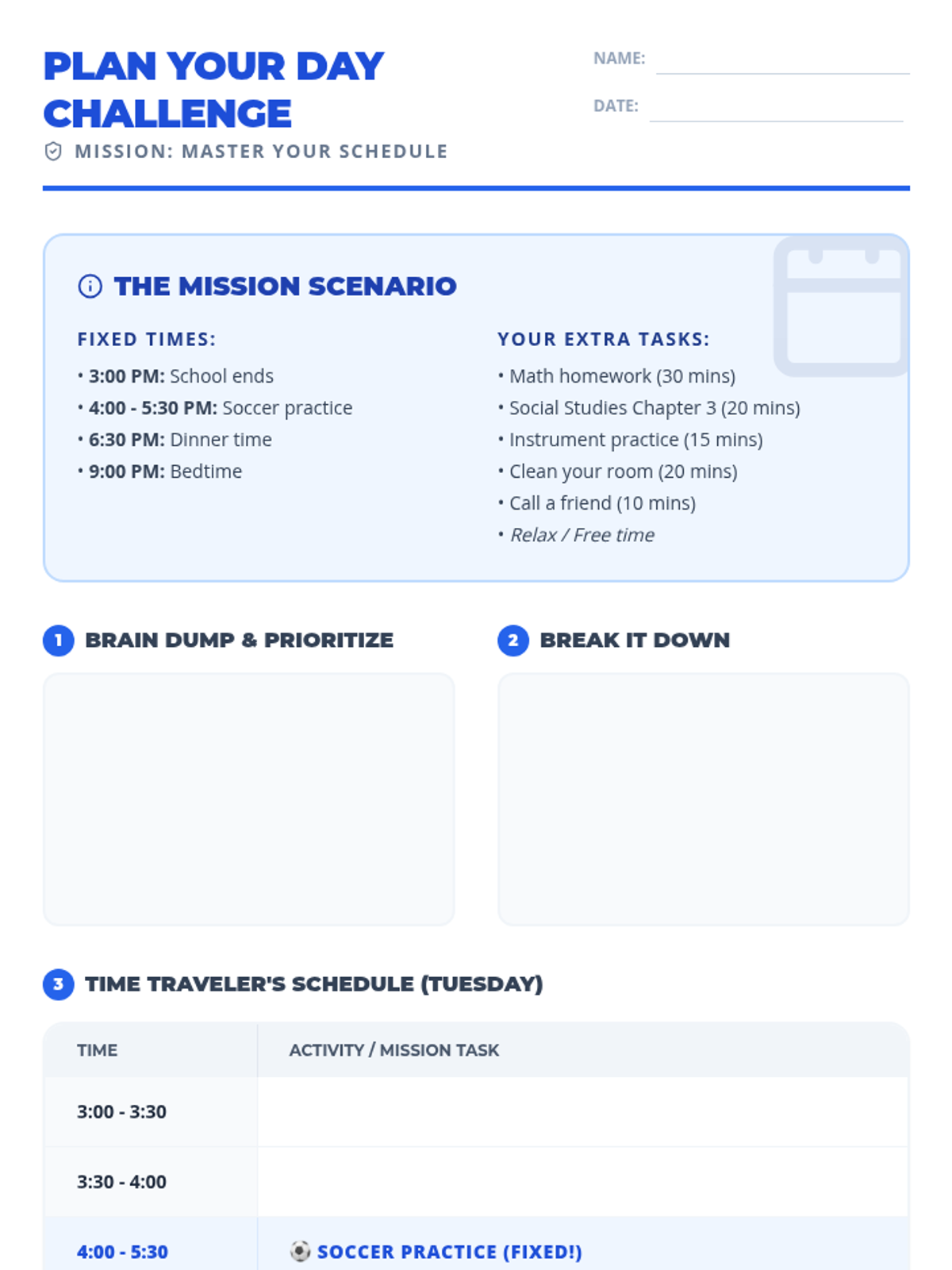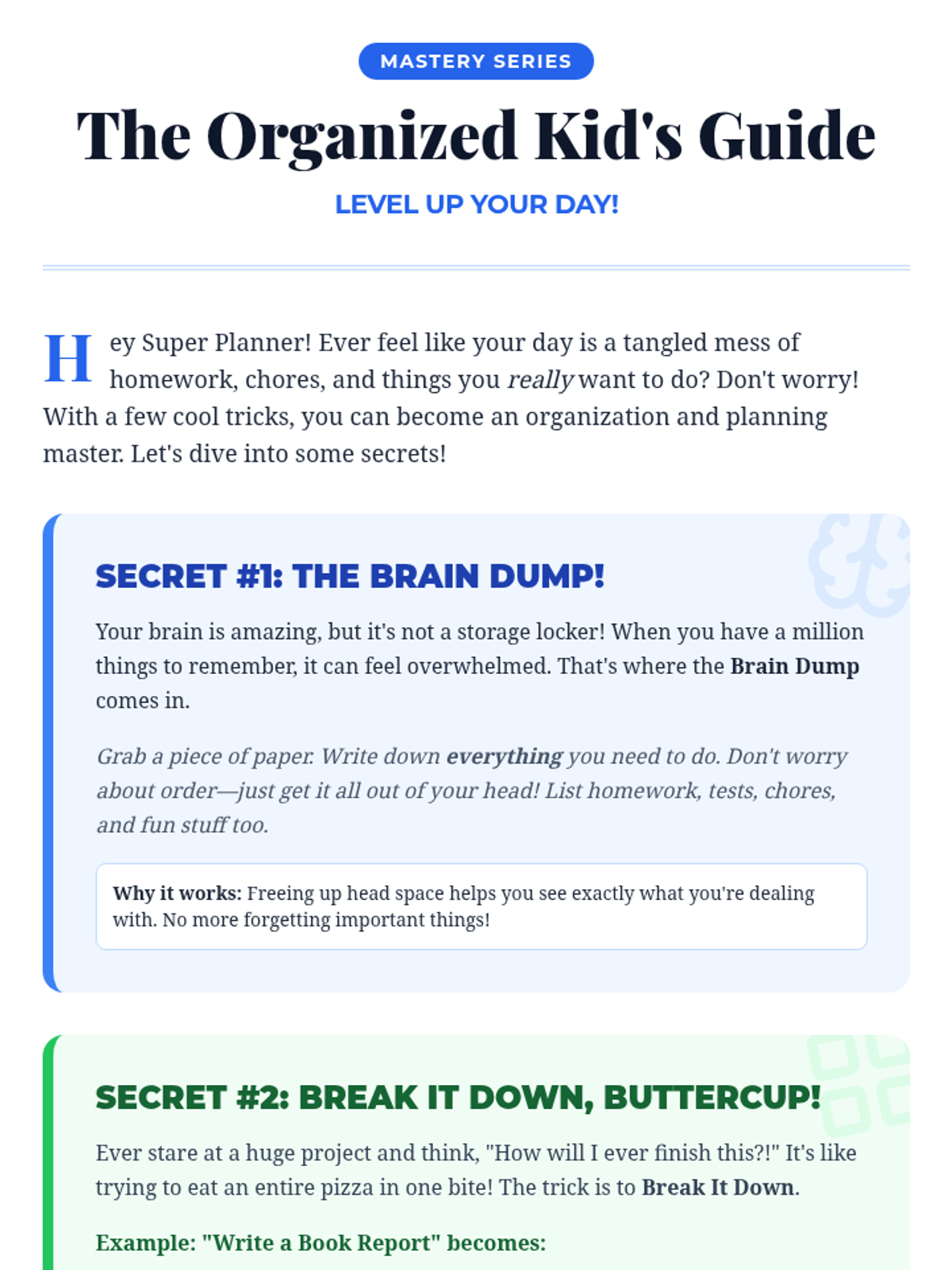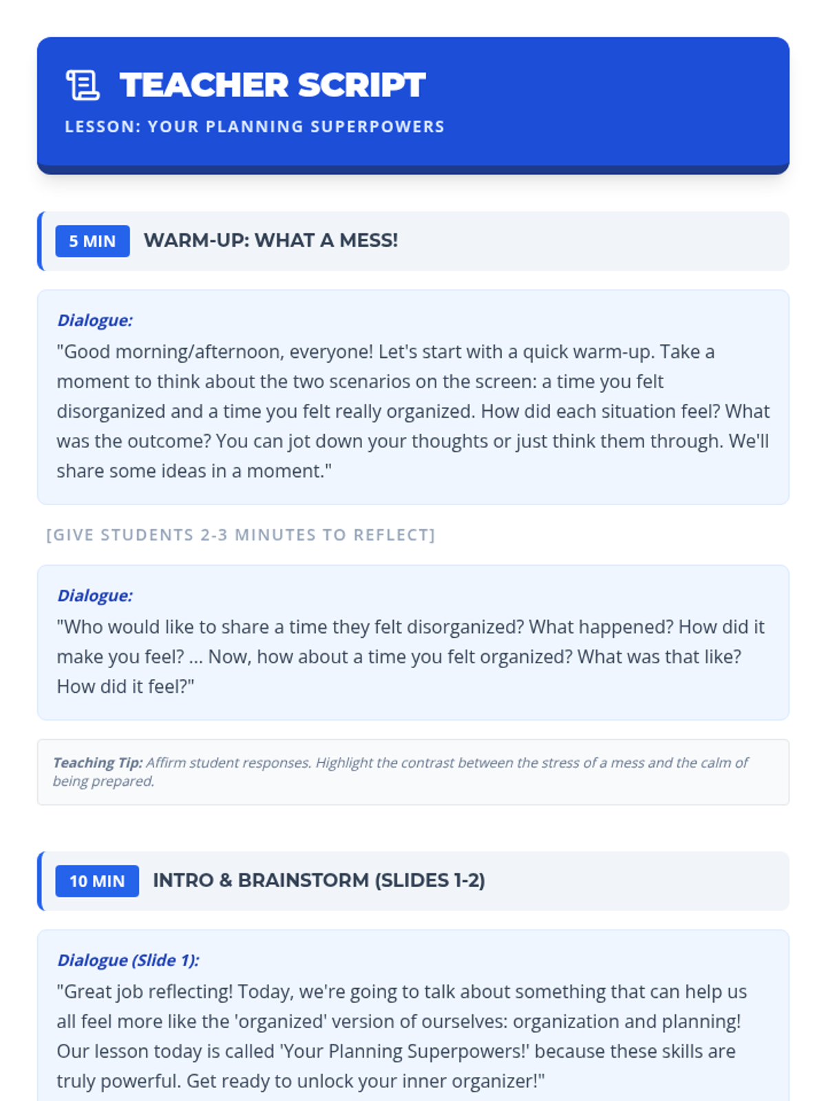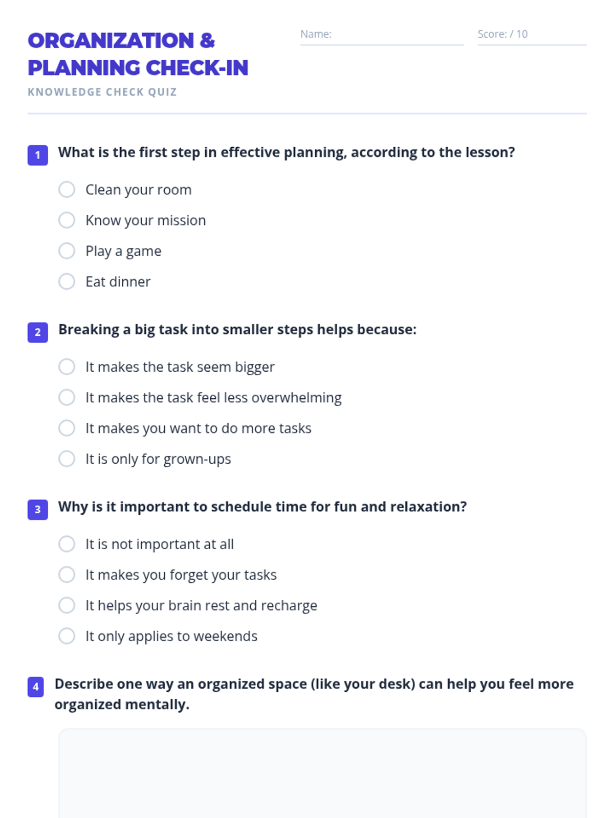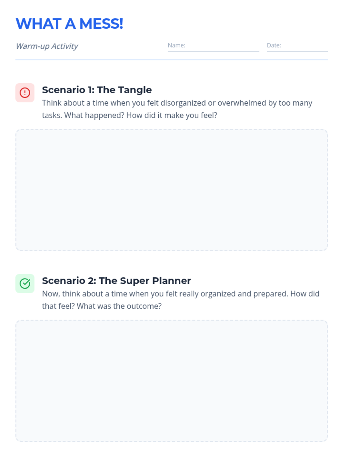 A two-part series for 5th and 6th graders designed to build foundational organization and planning habits. Students transition from learning the '3-Step Planning Toolkit' to applying advanced scheduling techniques, culminating in a week-long personal planner project.