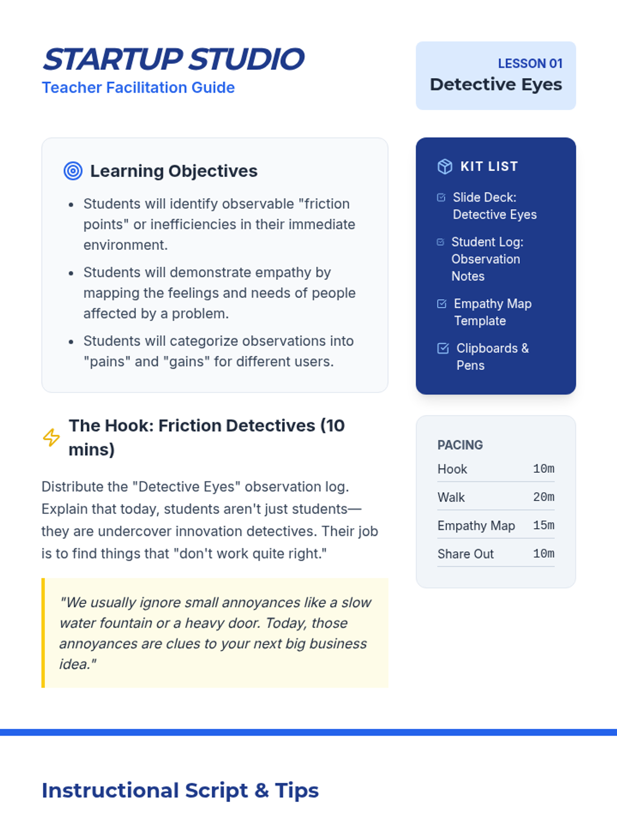 Students learn to identify authentic opportunities for innovation within their school or community. Moving beyond simple brainstorming, learners practice observation techniques and empathy mapping to uncover latent needs and frustrations experienced by others. The journey culminates in students selecting a specific problem and using divergence and convergence thinking strategies to generate a wide range of potential solutions.