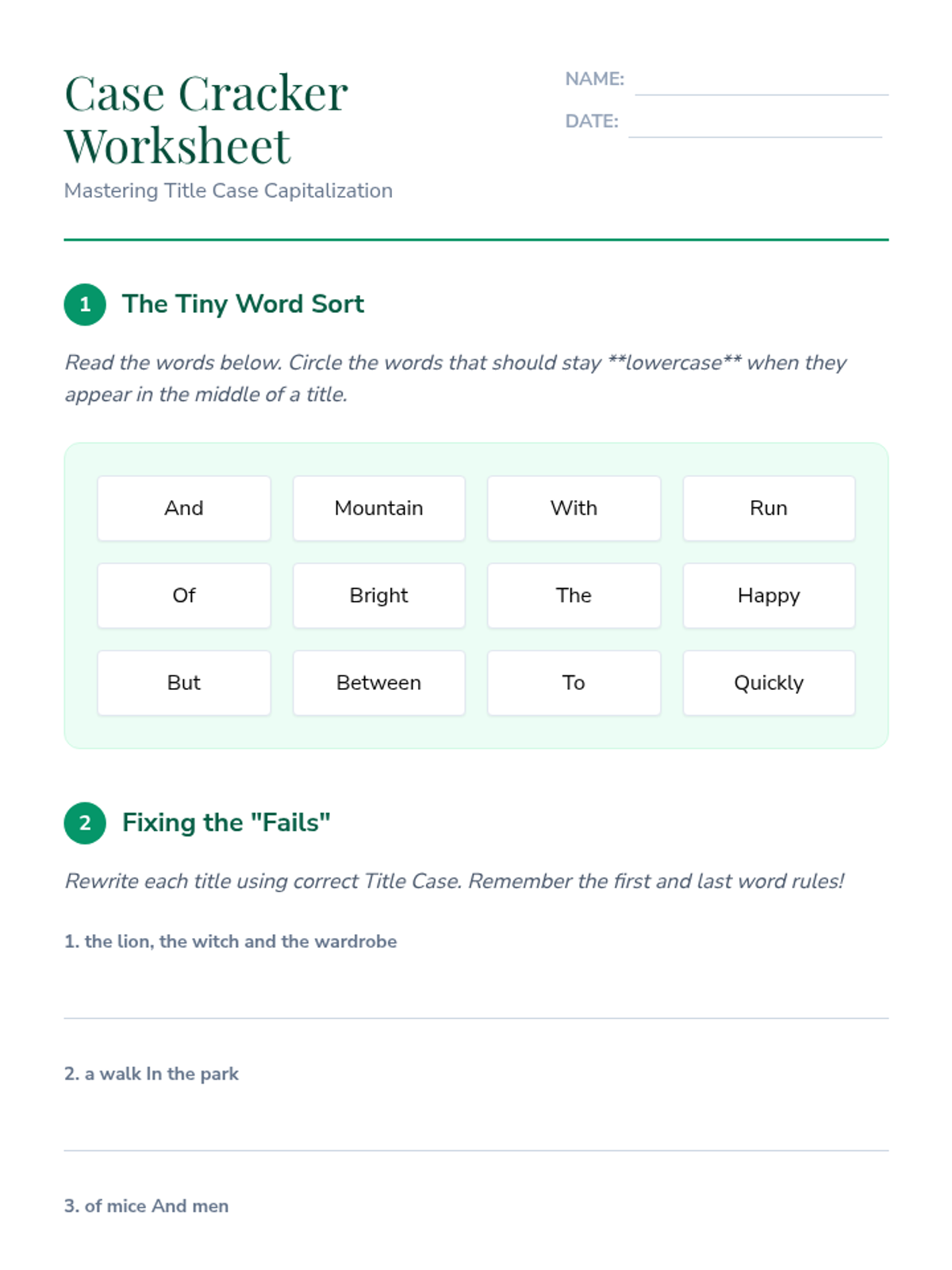 A comprehensive 6th-grade sequence on capitalization and formatting rules for titles. Students master Title Case rules, distinguish between italics and quotation marks for various media, and learn to format complex titles with subtitles and proper nouns.