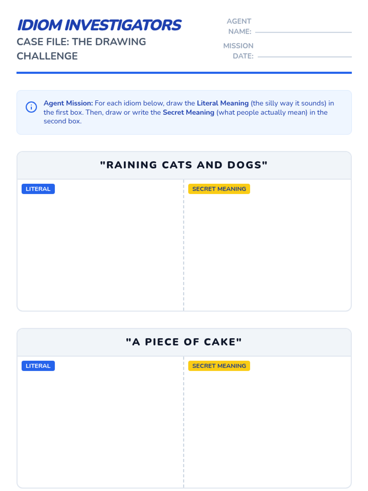 A 5-lesson sequence for 6th-grade students focusing on distinguishing literal from figurative language through visual support, games, and social-emotional learning contexts. Students will progress from visual interpretation to social application of common idioms.