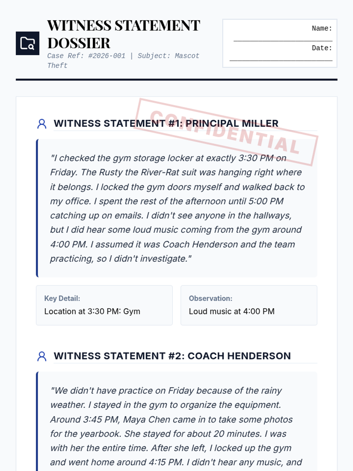 A grammar-focused ESL unit where students act as investigators to solve a classroom mystery. They master passive voice, modals of deduction, reported speech, and past perfect to write an objective case report.