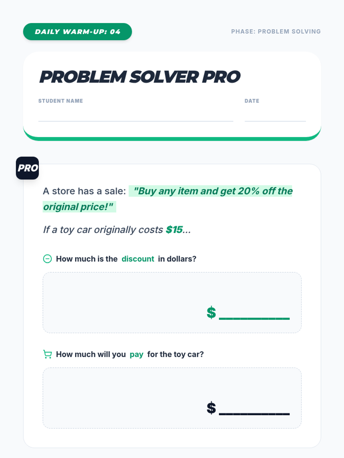 A lesson sequence focusing on financial literacy and the practical application of percentage decrease through real-world shopping scenarios and discount calculations.