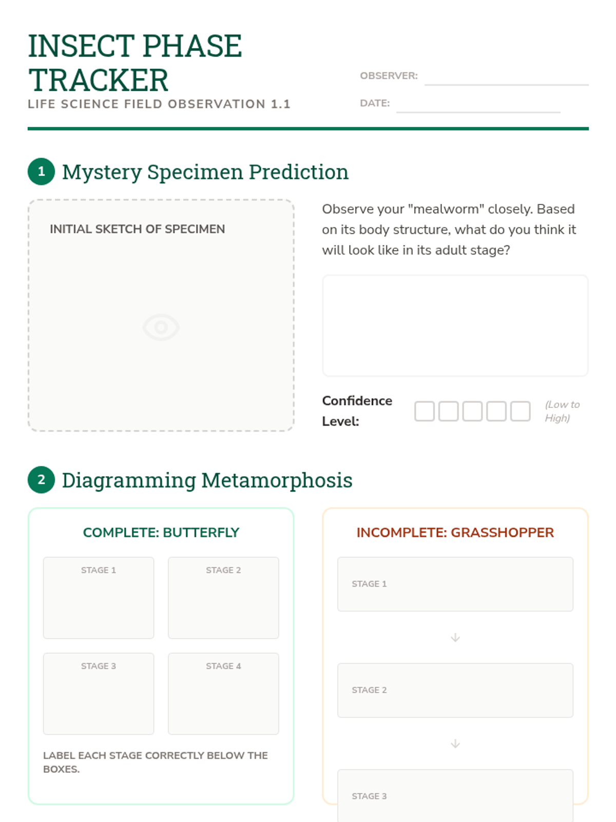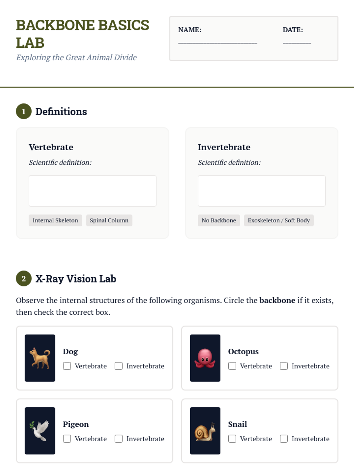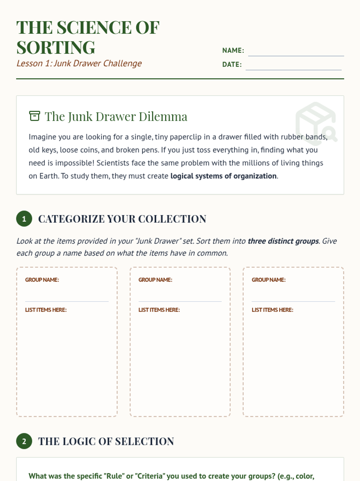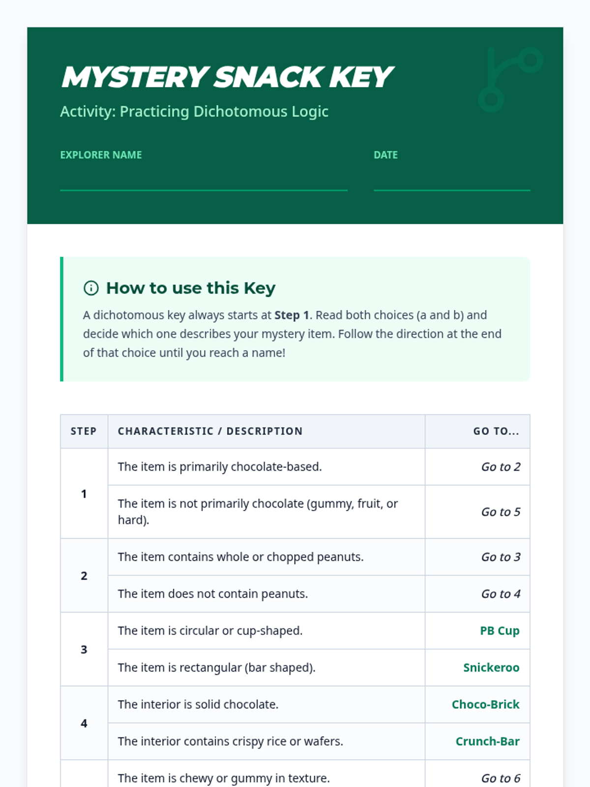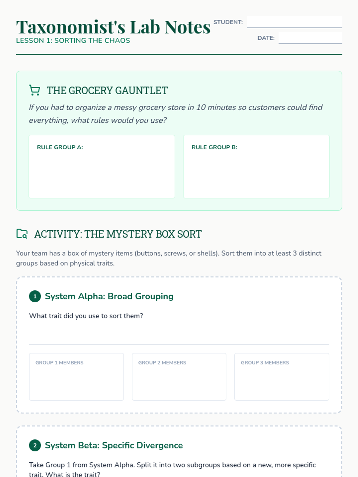 Taxonomy Trail Worksheet