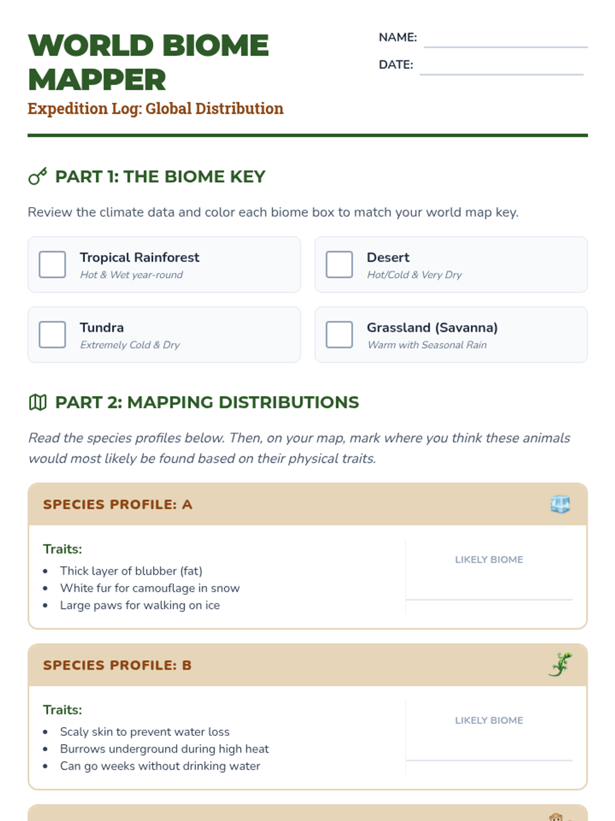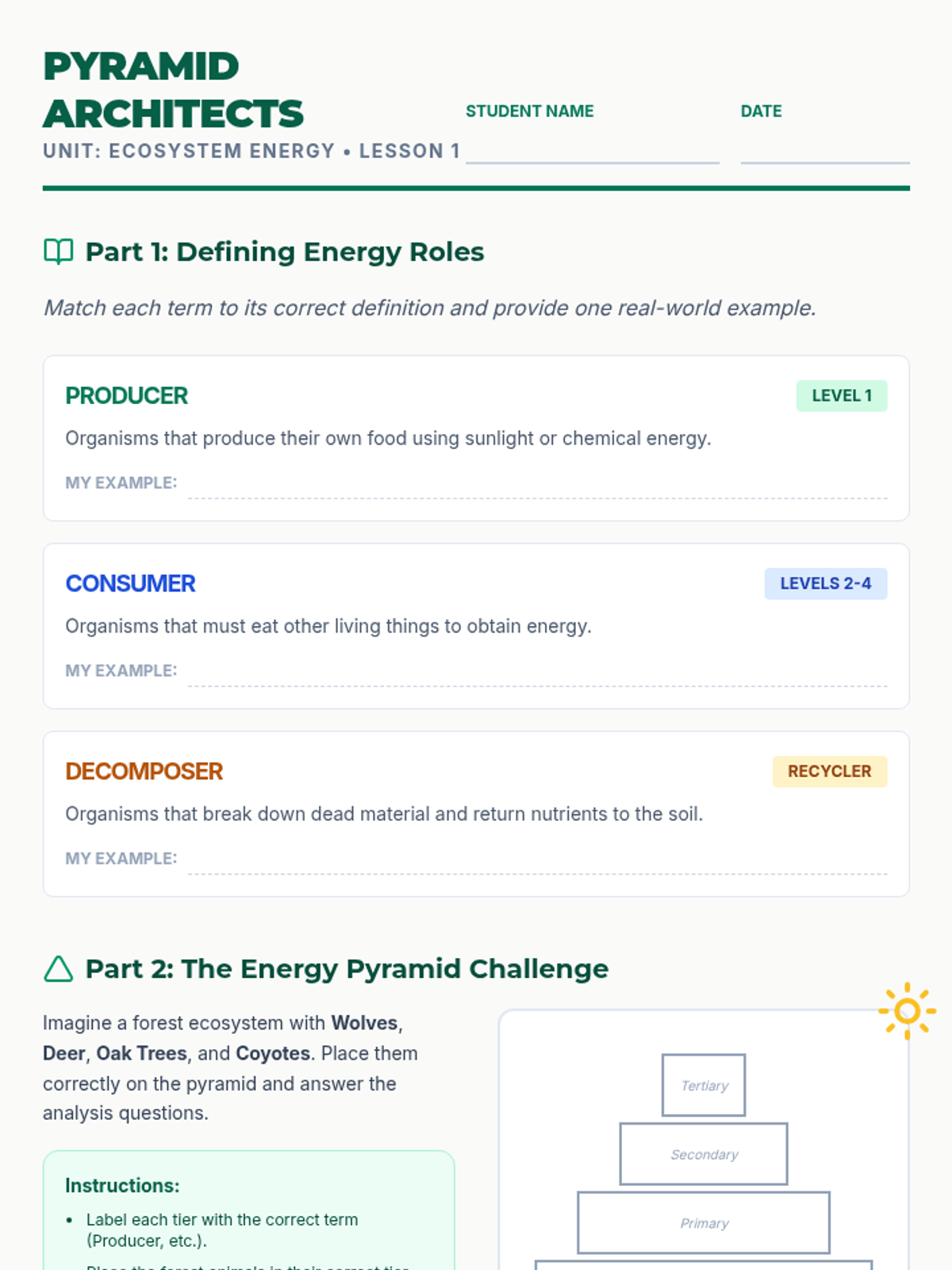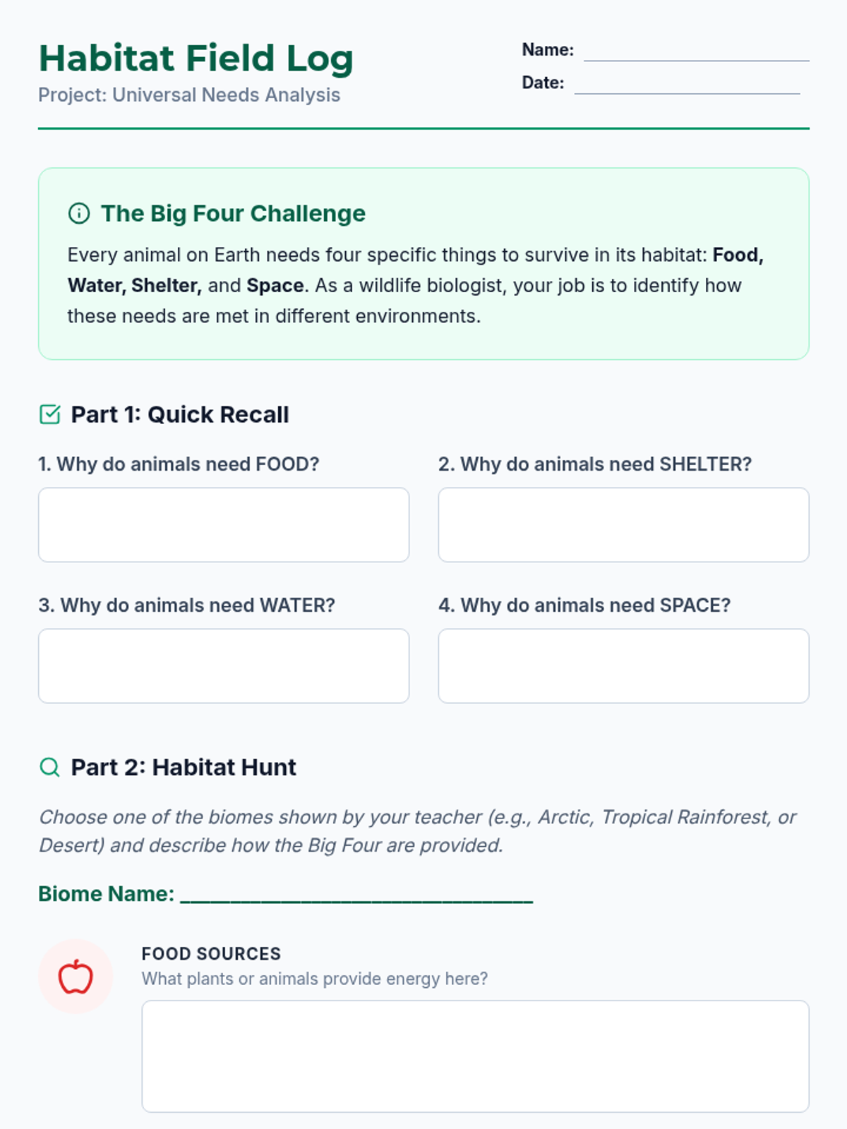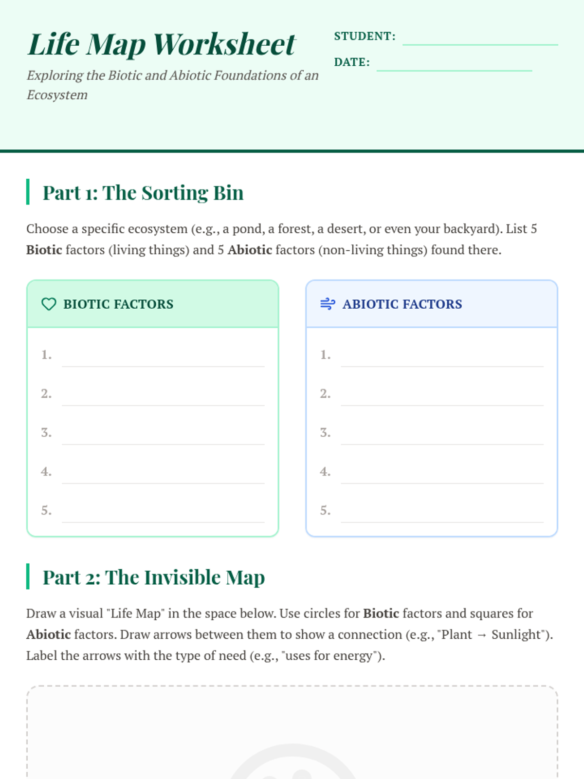 Ecosystem Study Worksheet