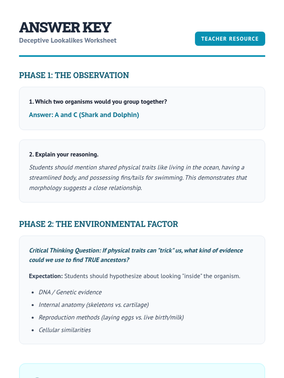 Deceptive Lookalikes Answer Key