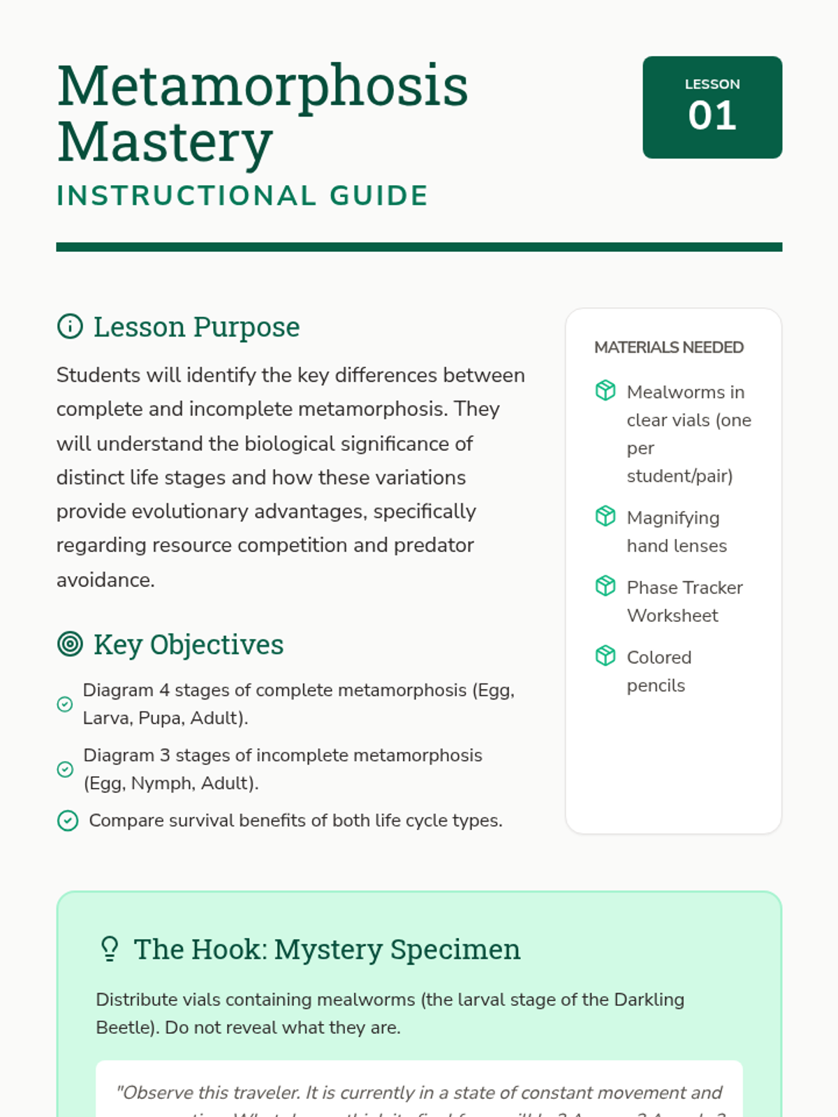 A collection of backward-designed science lessons for middle school, utilizing assessment-driven instruction to build a strong foundation in biological concepts.