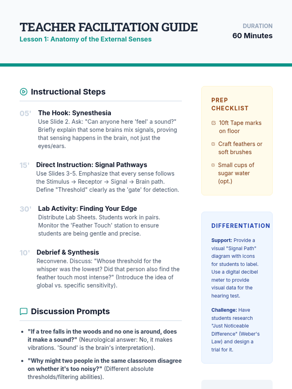 Sensory Receptor Teacher Guide