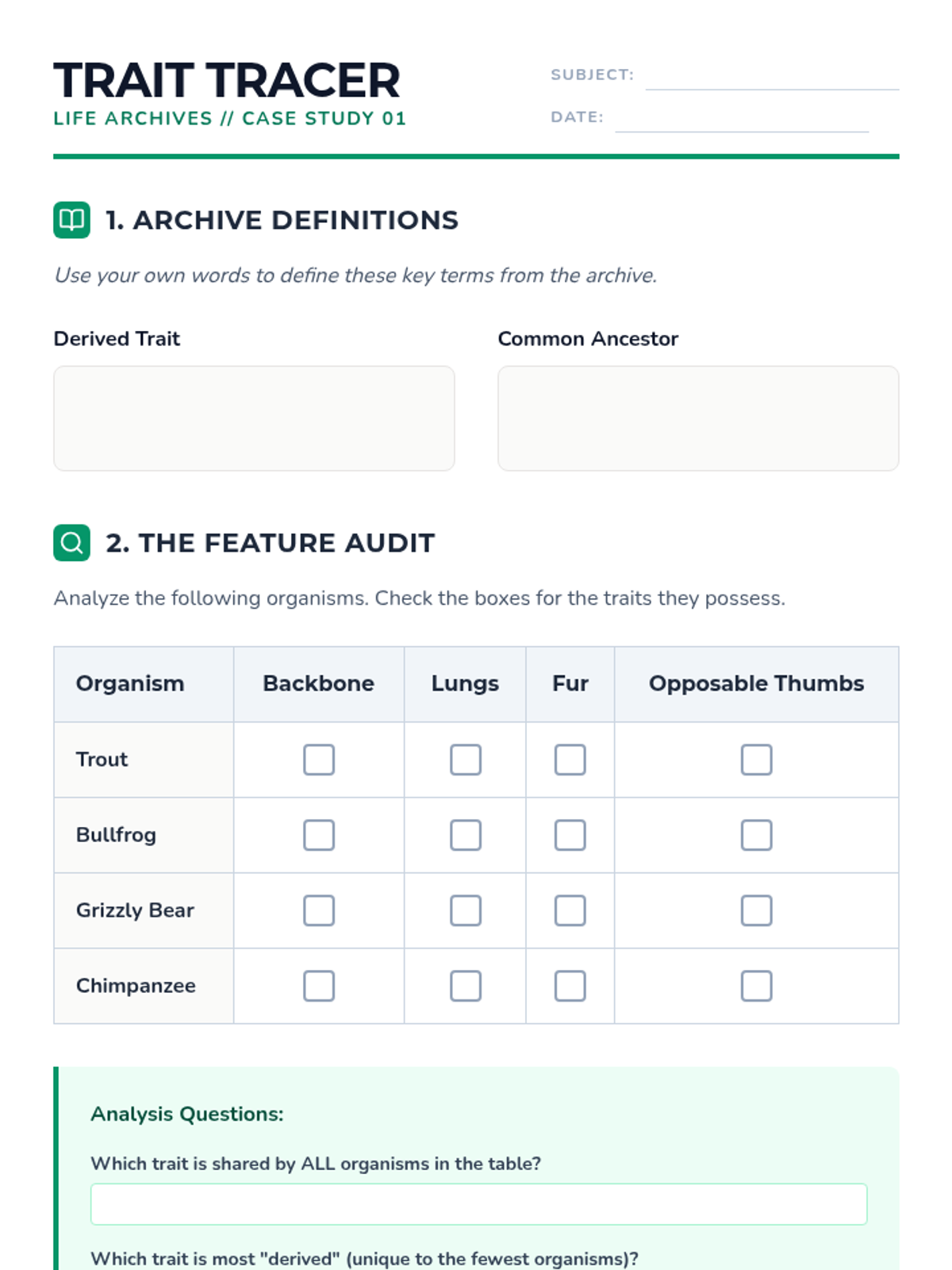 Trait Tracer Worksheet