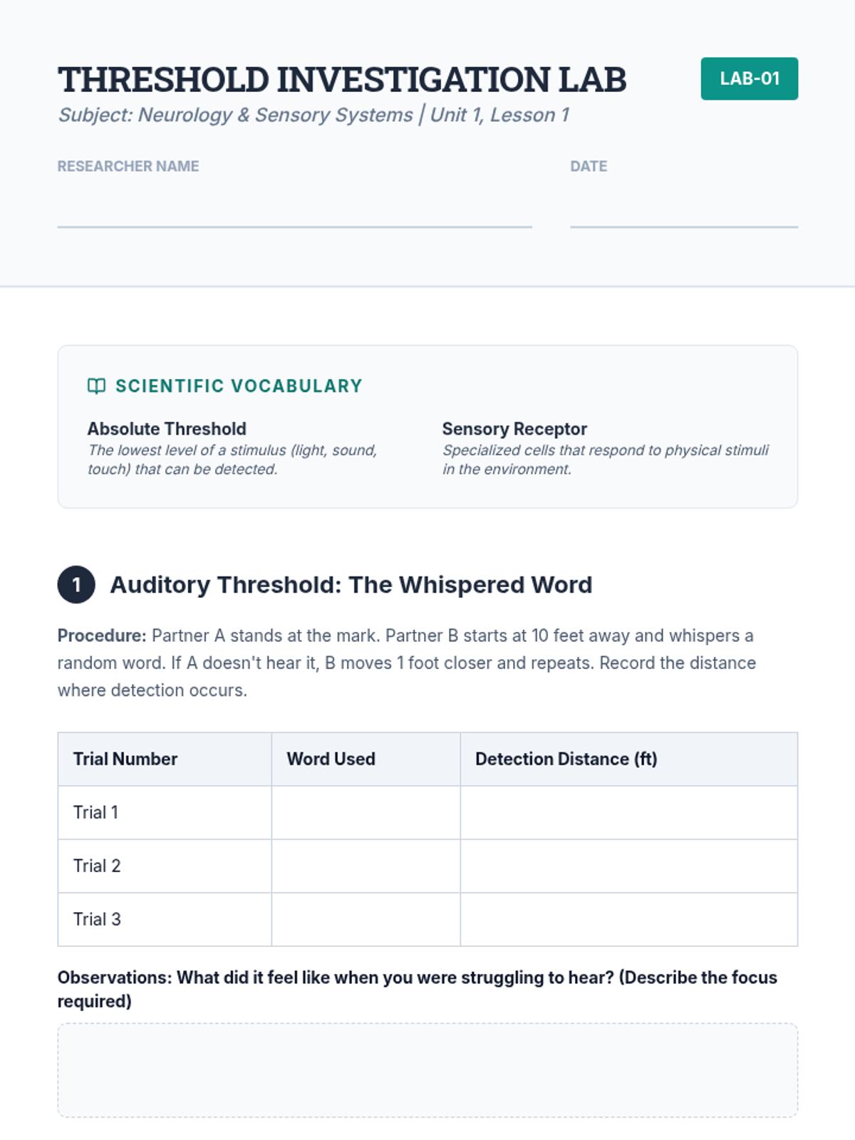 Threshold Lab Sheet