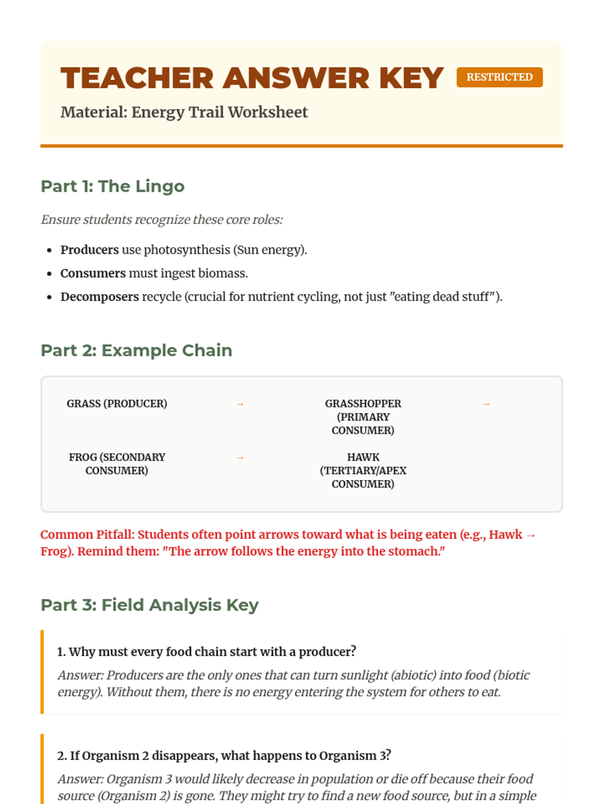 Ecosystem Study Answer Key