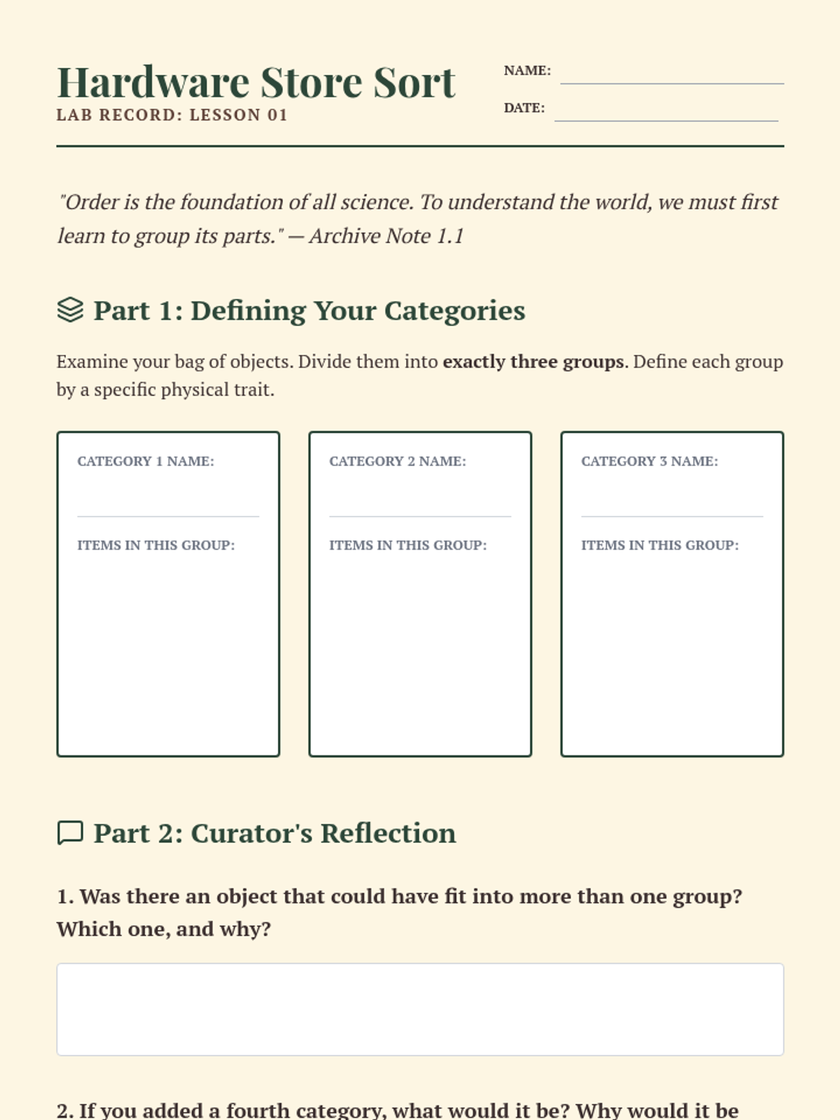 Science & EngineeringLife ScienceLiving ThingsAnimalsPlantsBody SystemsTraitsAdaptationsCellsEcosystemsHeredityGenes to TraitsCell DivisionPhysicsComparing MaterialsShapes and PropertiesMagnetsMagnetismLightSoundLight and SoundMatterStates of MatterChanges of StateMixturesPhysical and Chemical ChangeHeating and CoolingHeat and Thermal EnergyEnergyForce and MotionElectrical CircuitsAtoms and MoleculesPeriodic TableMotion in One DimensionMotion in Two DimensionsScalars and VectorsForces and Laws of MotionCircular Motion and GravityMomentum and ImpulseWork, Energy, and PowerWavesElectromagnetic WavesGeometric OpticsElectricity and MagnetismSimple Harmonic MotionThermodynamicsNuclear PhysicsEarth Science & AstronomyWeatherWater CycleRocks and MineralsFossilsEarth's FeaturesEarth's ResourcesEarth's StructureWeather and ClimateEarth EventsFossils and Geologic TimePlate TectonicsHuman ImpactsAstronomyChemistryUnits and MeasurementAtomic StructurePeriodic TrendsChemical BondingNomenclatureMolecular StructureIntermolecular ForcesThe MoleStoichiometryProperties of GasesSolutionsChemical ReactionsBalancing EquationsEnergy ChangesRates of ReactionsEquilibriumAcids and BasesQuantum ModelBiologyClassificationCell StructureThe Chemistry of LifeBiomoleculesCellular TransportCell EnergyCell Growth and DivisionDNAProtein SynthesisMeiosis and Sexual ReproductionPatterns of InheritanceMulticellular OrganismsEvolutionEcologyBiodiversityComputer ScienceAlgorithms and Computational ThinkingProgramming LanguagesComputing SystemsNetworks and InternetData AnalysisCybersecurityAI and Machine LearningSoftware Design and DevelopmentBlockchainEngineering & AIDesigning ExperimentsEngineering PracticesDesign ThinkingEngineering Design ProcessMechanical EngineeringElectrical EngineeringMaterials and StructuresCAD and 3D DesignRoboticsArtificial Intelligence BasicsVibe CodingMachine LearningAI Ethics and SocietySystems ThinkingEntrepreneurship & InnovationEntrepreneurial MindsetBusiness Idea DevelopmentBusiness Plan BasicsMarketing & Customer DiscoveryFinancial Management for Startups