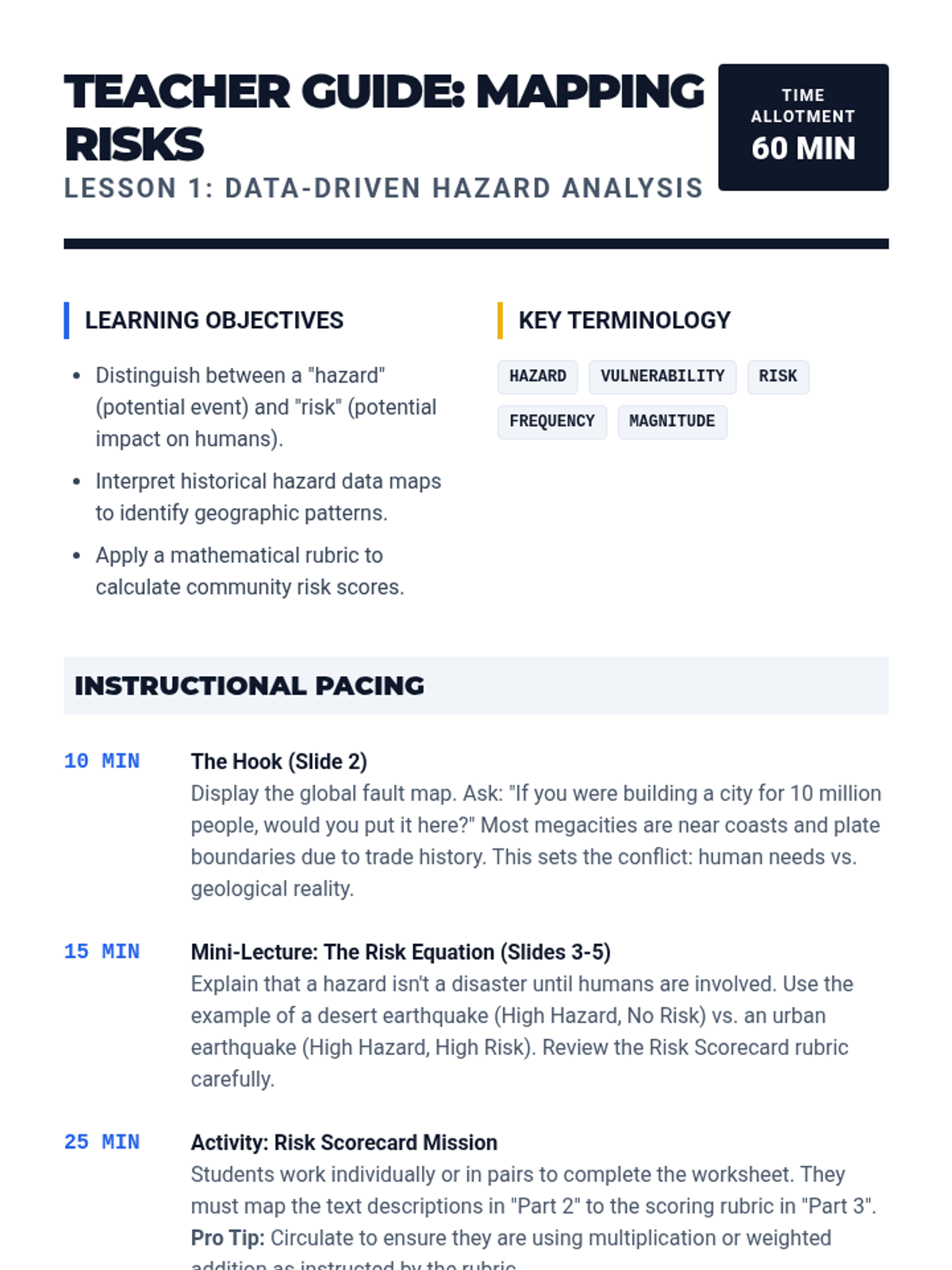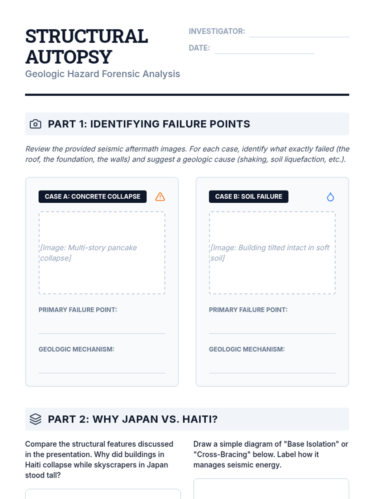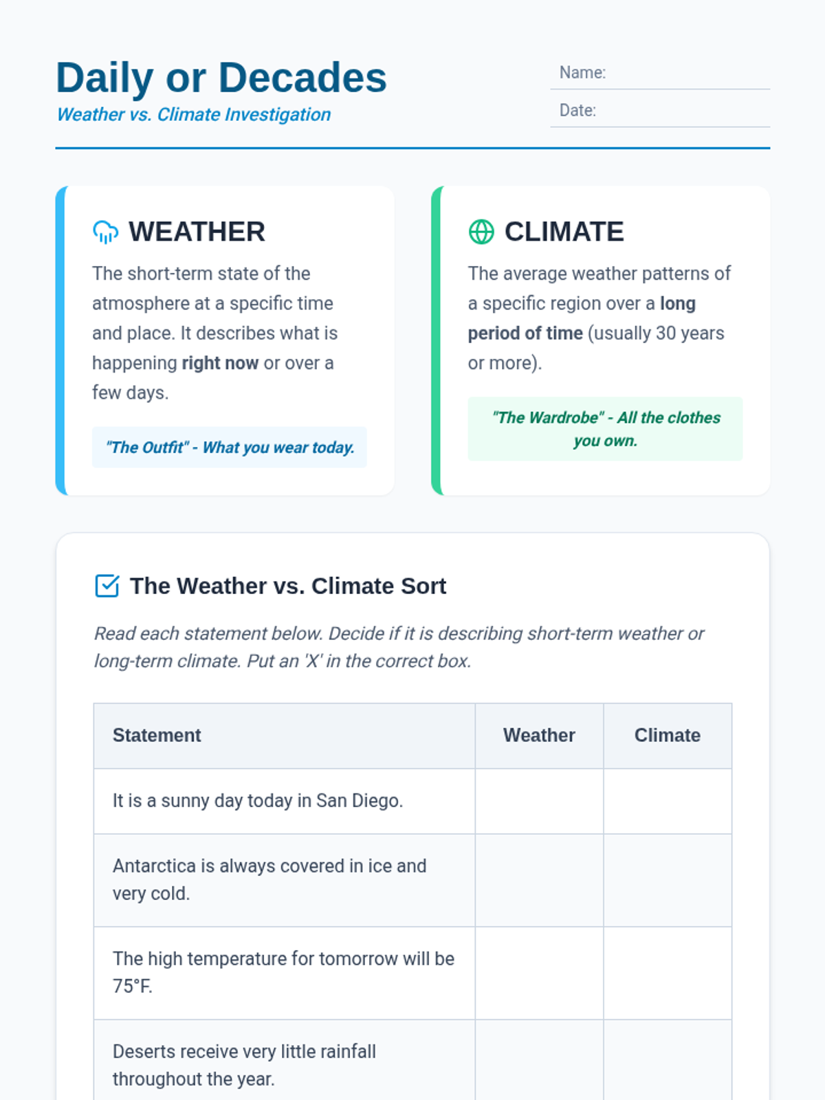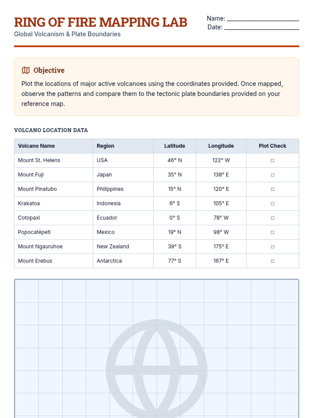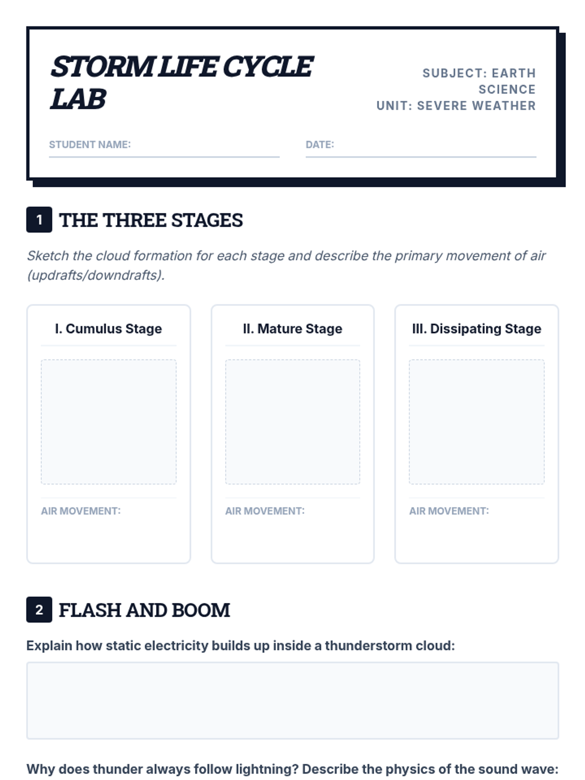Geological processes including plate tectonics, rock formation, and Earth's structure alongside atmospheric weather systems and fossil records. Examines human environmental impacts, resource management, and celestial bodies within the field of astronomy.