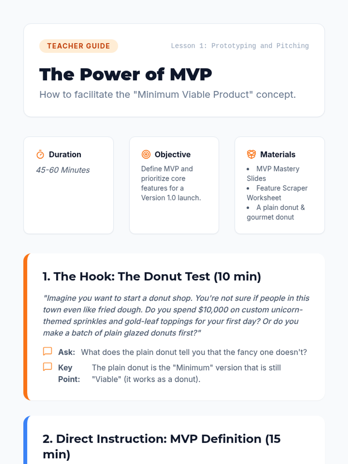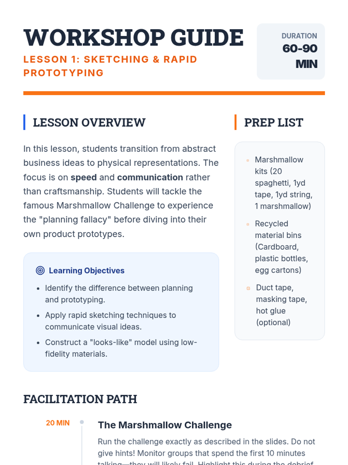 Students transition from business planning to execution by building Minimum Viable Products (MVPs) and crafting persuasive pitches. The sequence emphasizes rapid prototyping, iterative user testing, and the art of entrepreneurial storytelling.