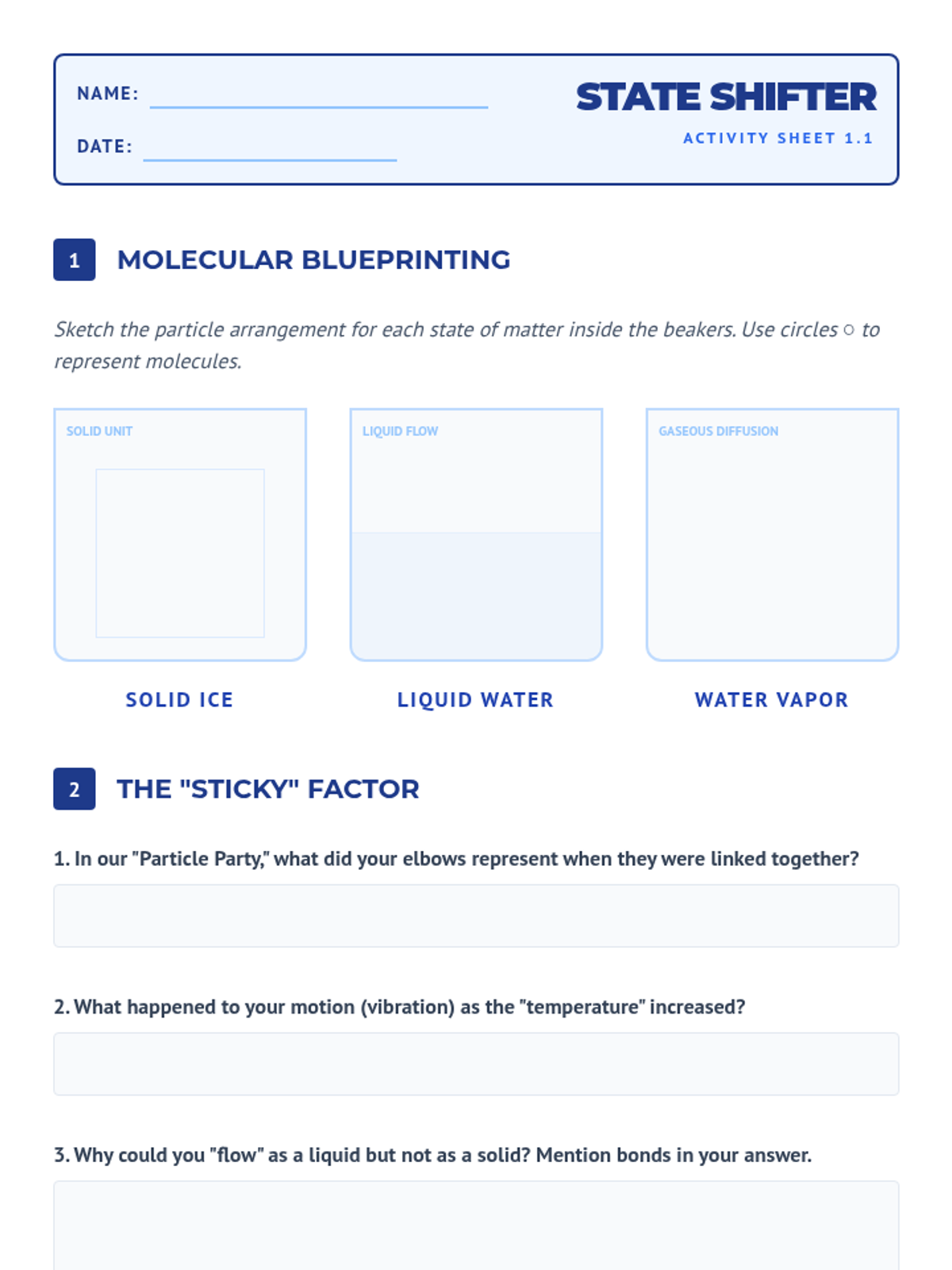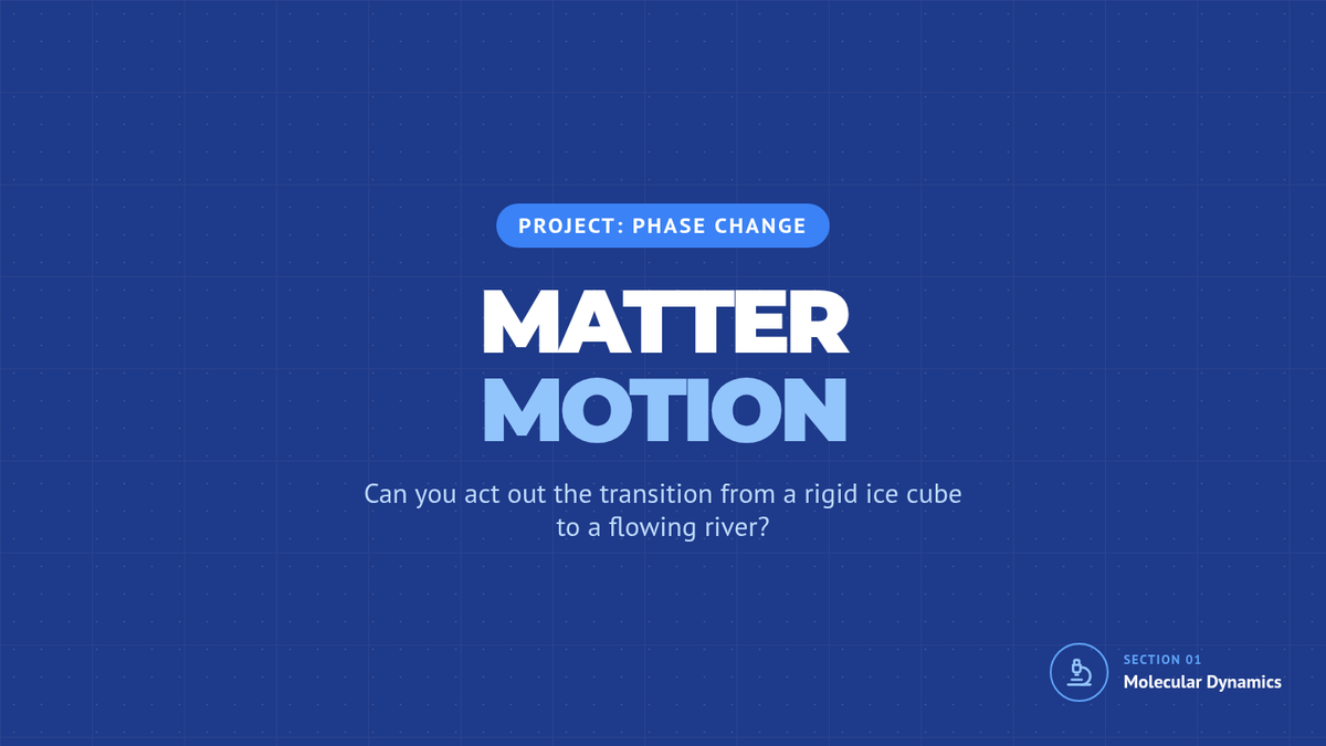 A 3-day exploration of thermal energy, particle motion, and phase changes. Students use models to understand how adding or removing energy transforms substances from solids to liquids to gases.