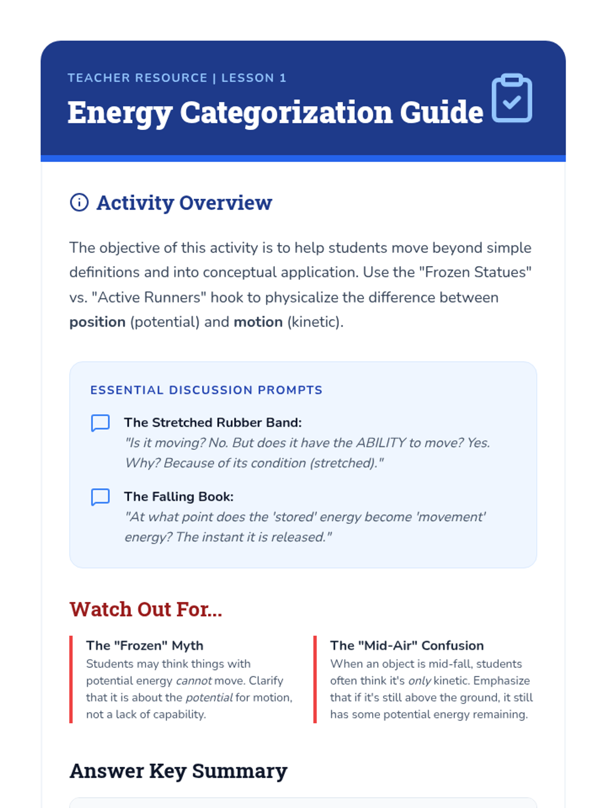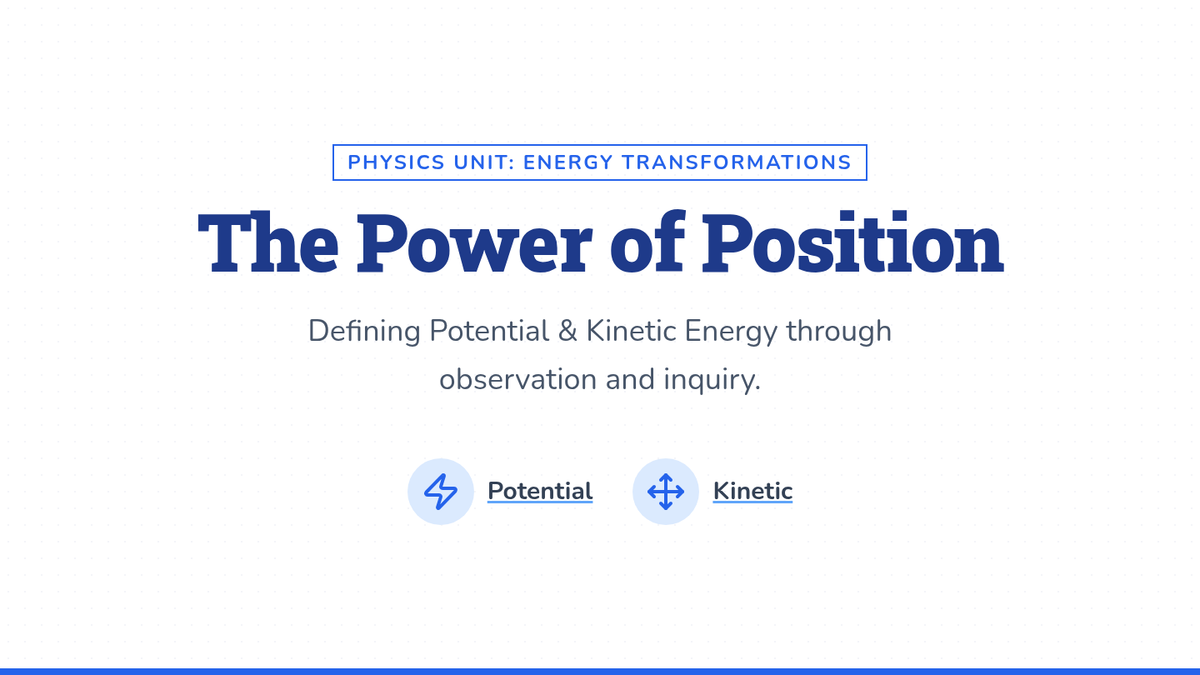 This inquiry-based sequence introduces students to the fundamental relationship between position and motion through the lens of energy transformations. Students progress from qualitative observations of potential and kinetic energy to quantitative data collection regarding mass, height, and speed, eventually synthesizing their findings into the Law of Conservation of Energy.