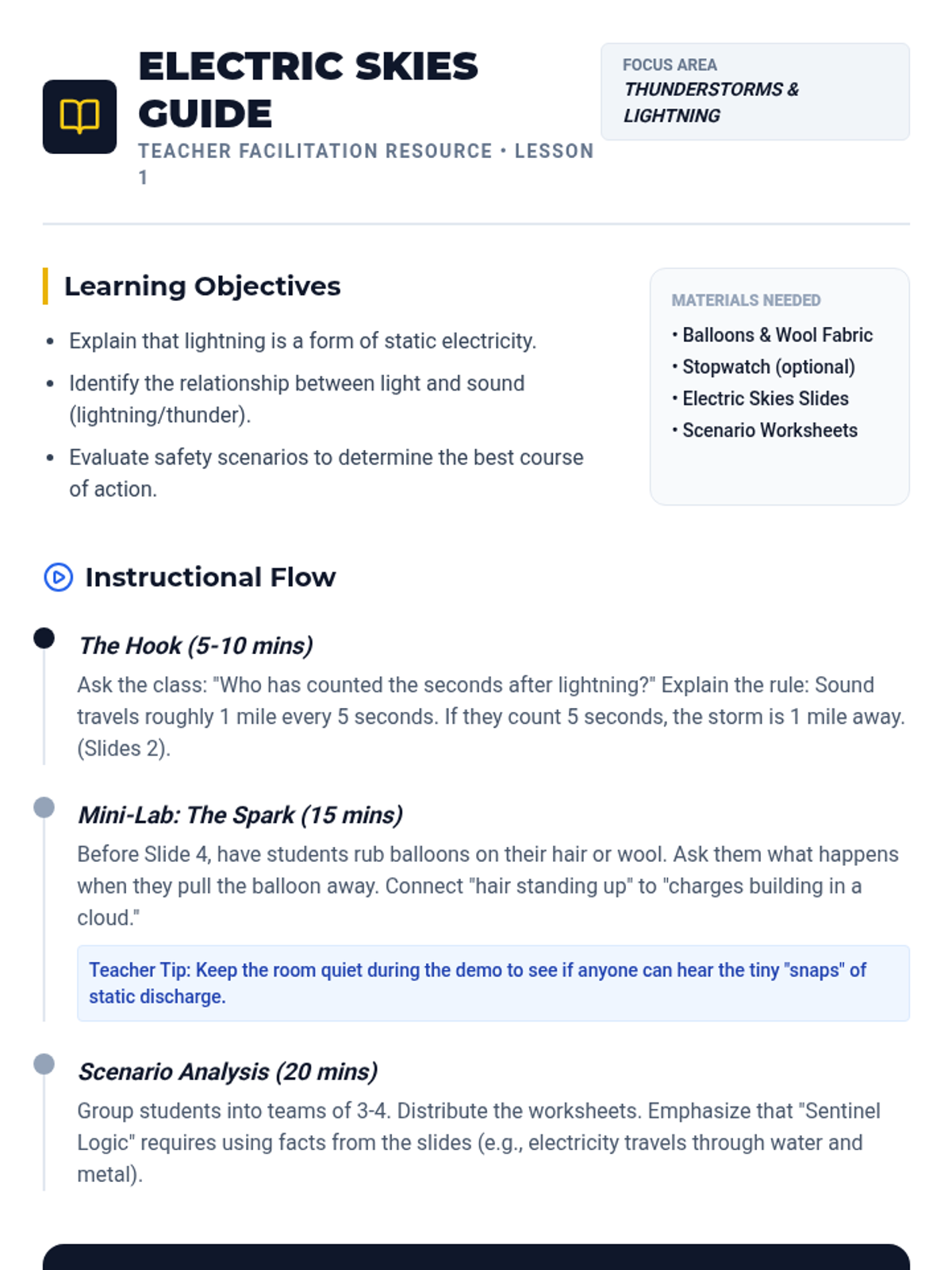 This project-based sequence explores severe weather phenomena and the engineering design required for human safety. Students investigate thunderstorms, tornadoes, and hurricanes, concluding with the design of safety kits and communication plans to protect communities.