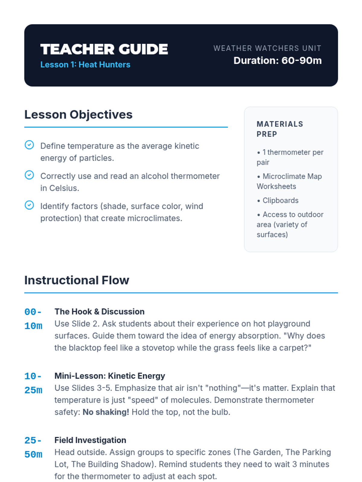 A comprehensive sequence for 6th-grade students exploring the tools and techniques of meteorology, focusing on quantifying atmospheric variables like temperature, pressure, humidity, and wind.