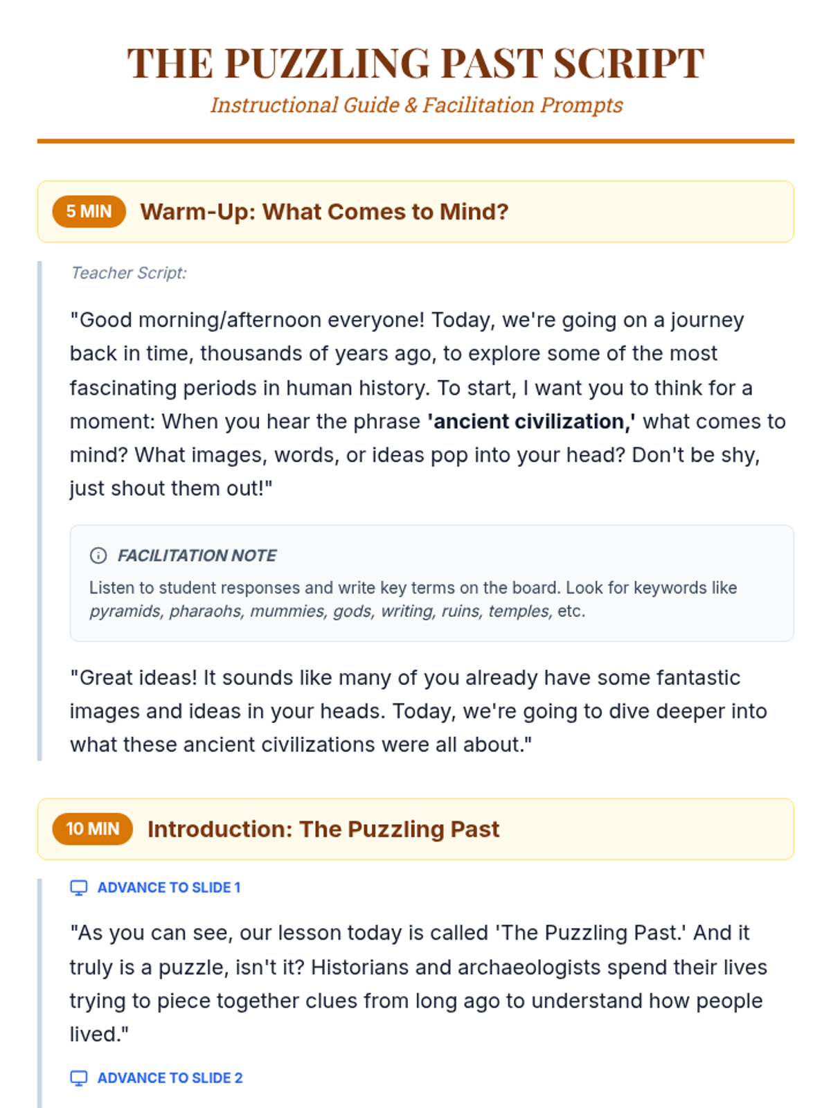 Archaeologist Guide Teacher Resource