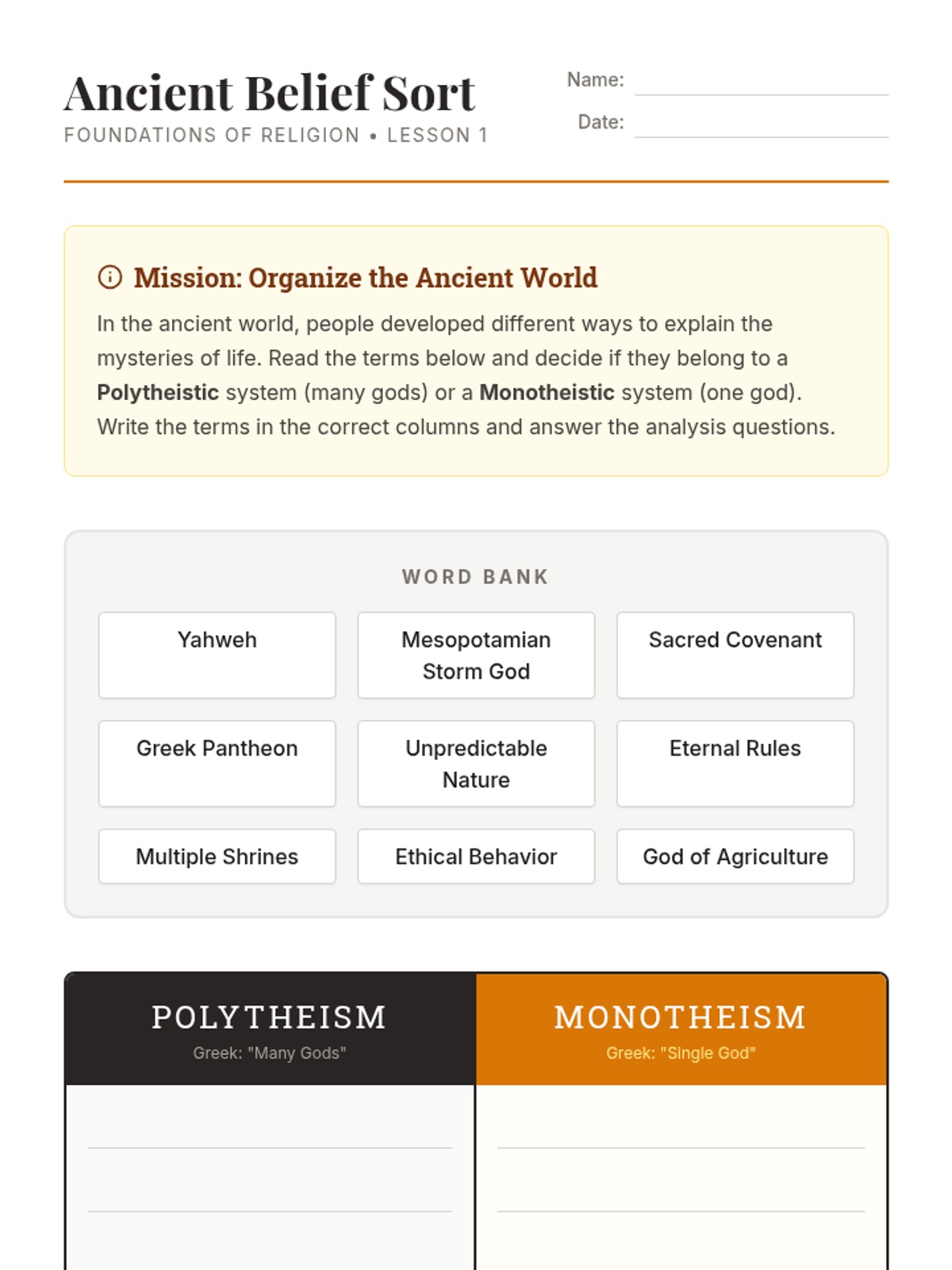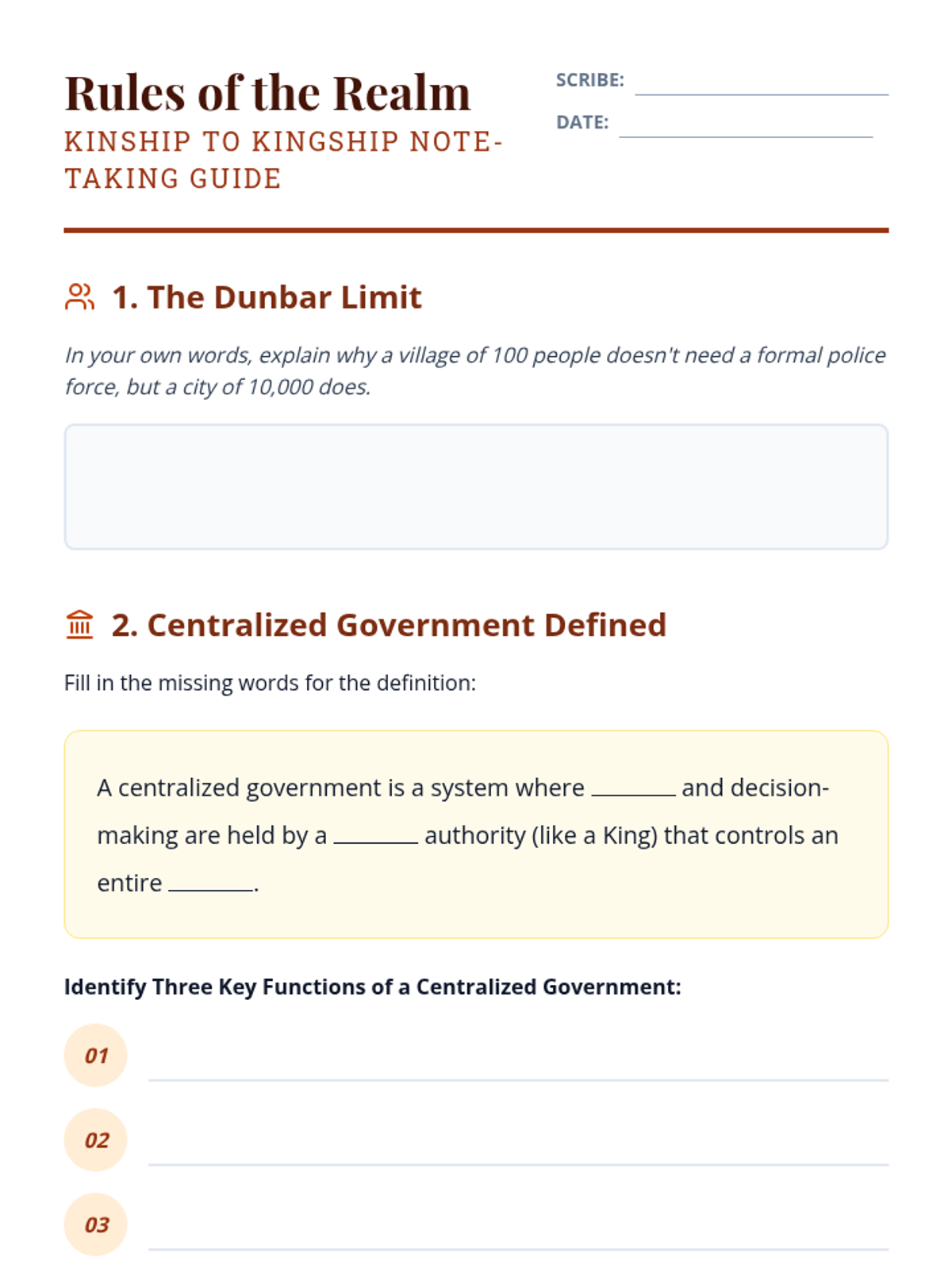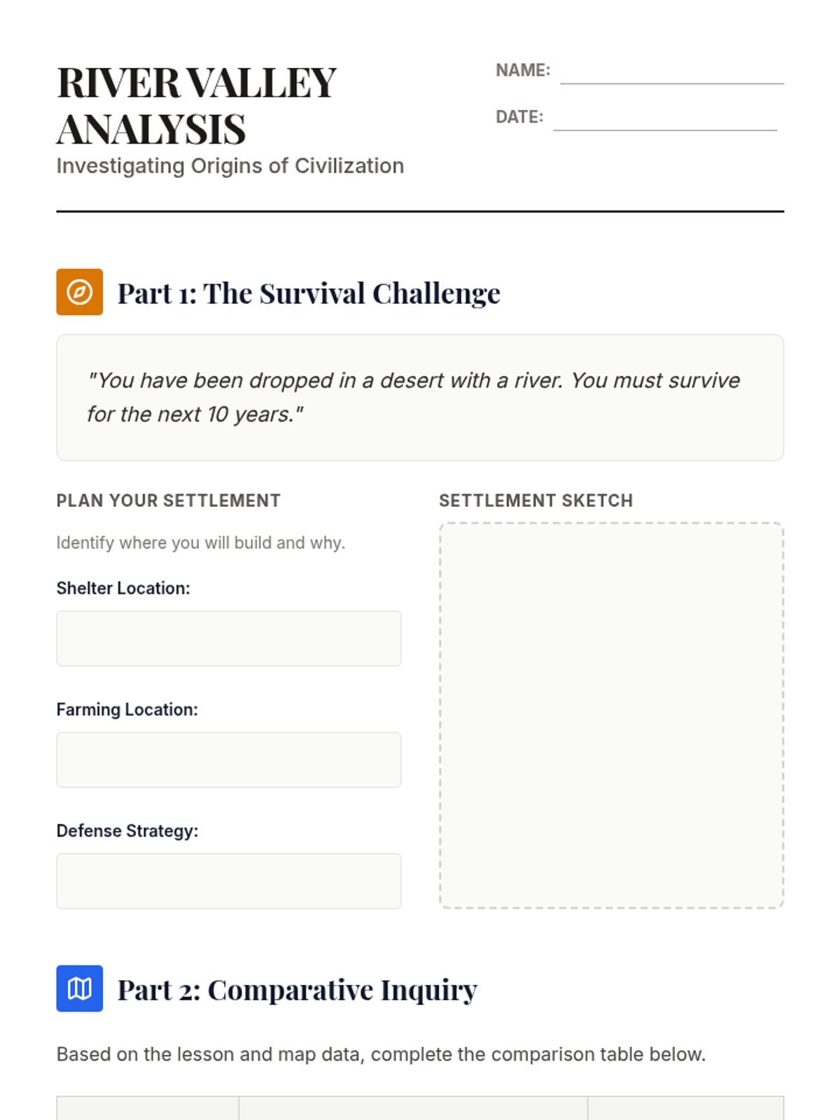 This sequence examines the transition from Neolithic villages to complex city-states, focusing on how agricultural surplus fueled social hierarchy, specialization, and political power. Students engage in architectural analysis, sociological inquiry, and a culminating simulation to understand the birth of social stratification.