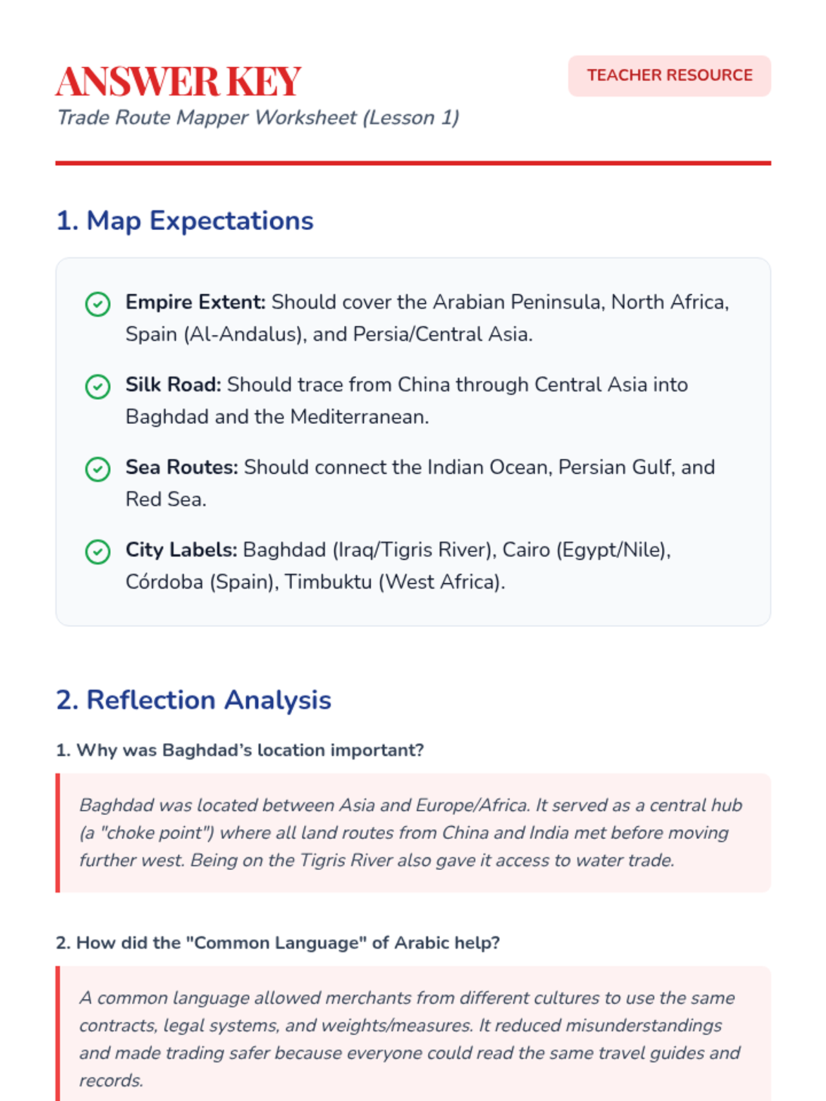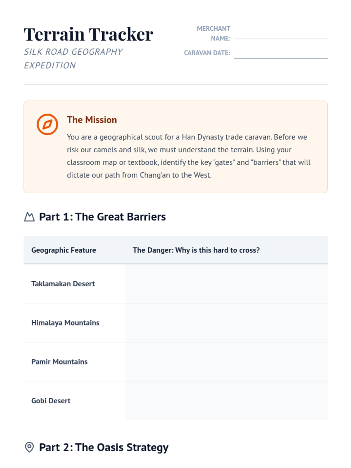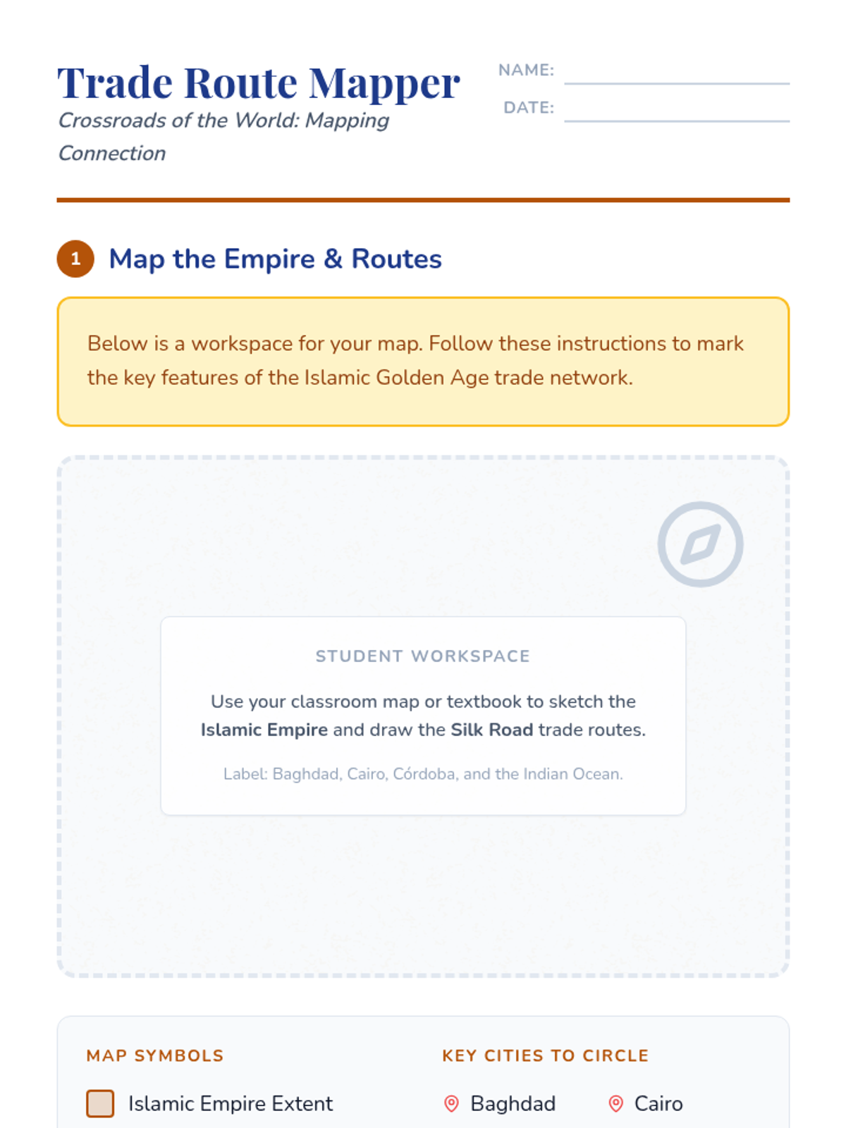 Trade Route Tracker Worksheet