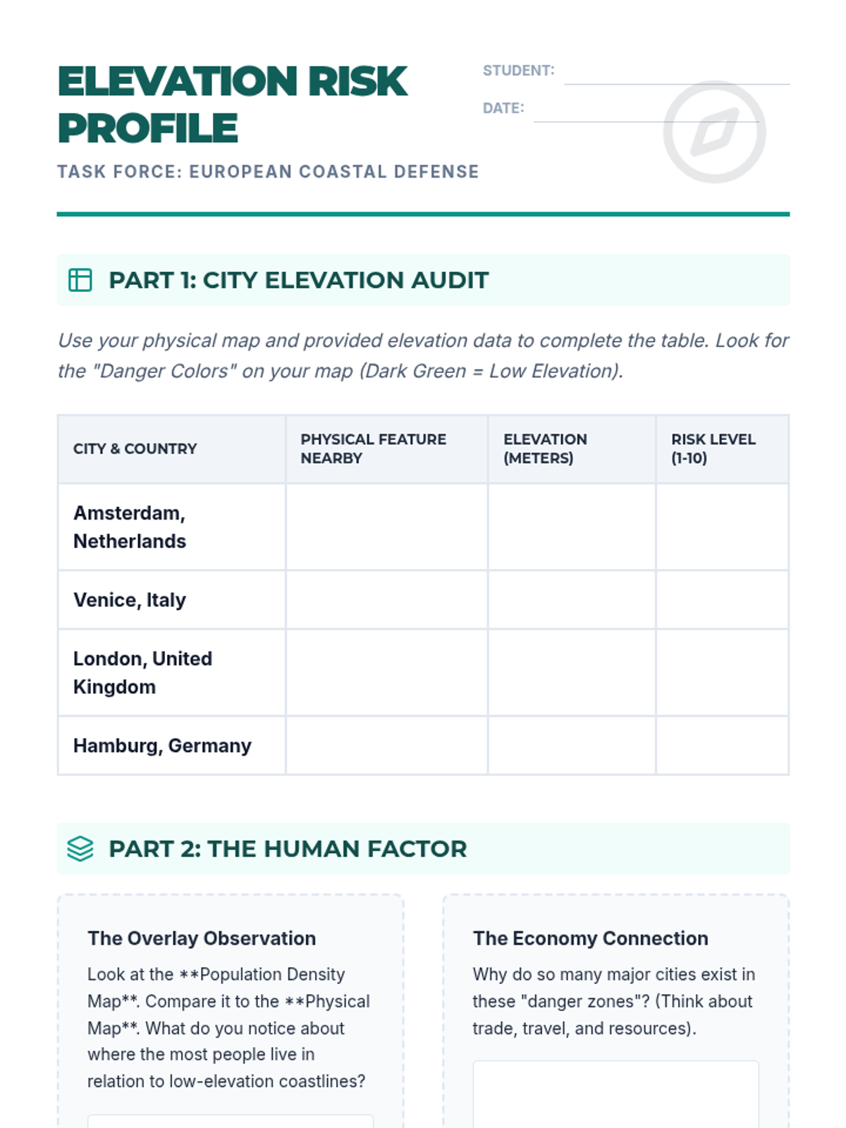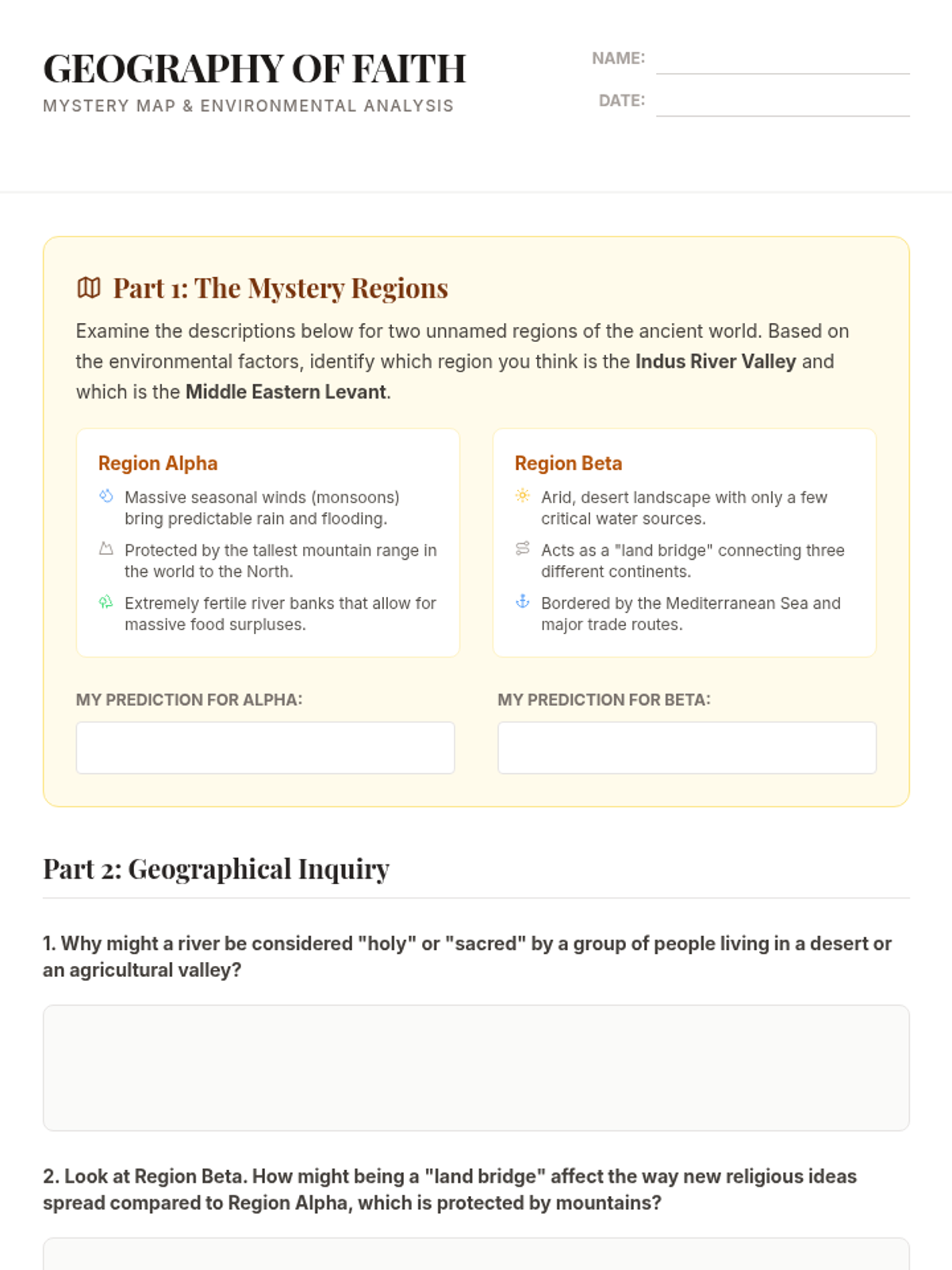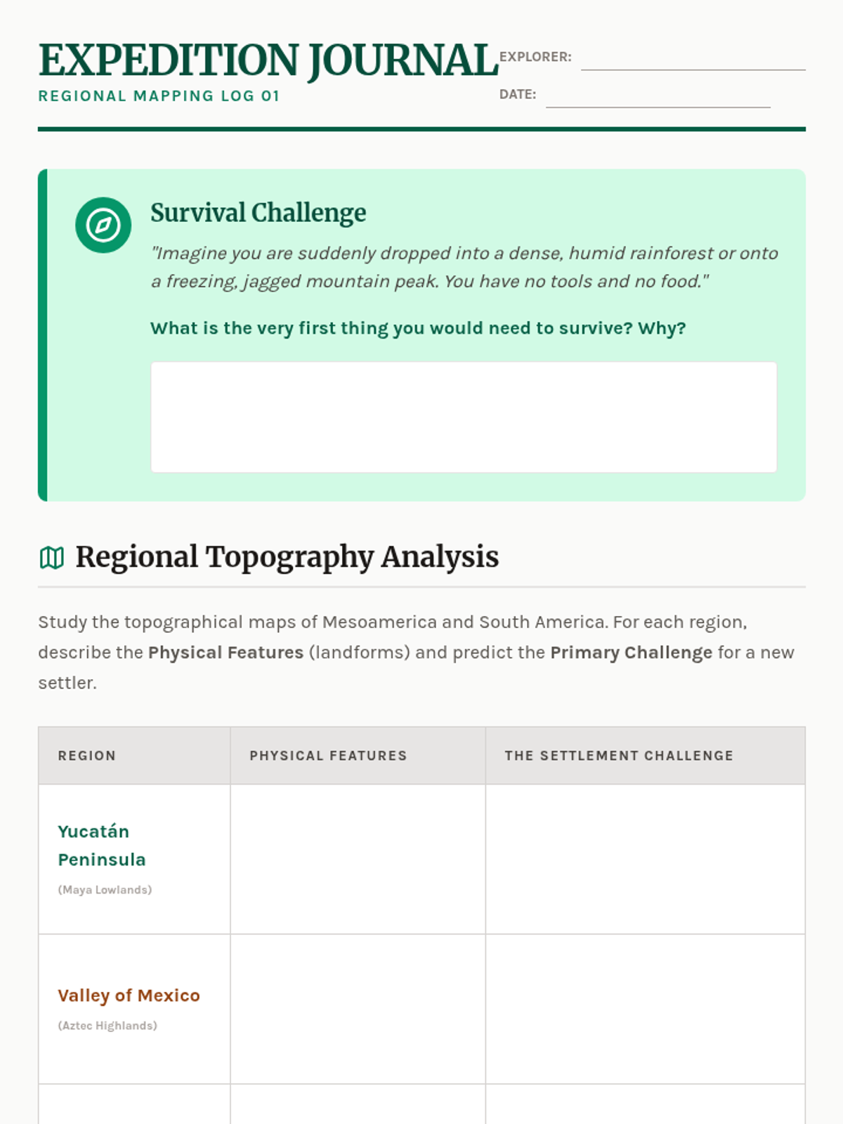Terra Incognita Worksheet