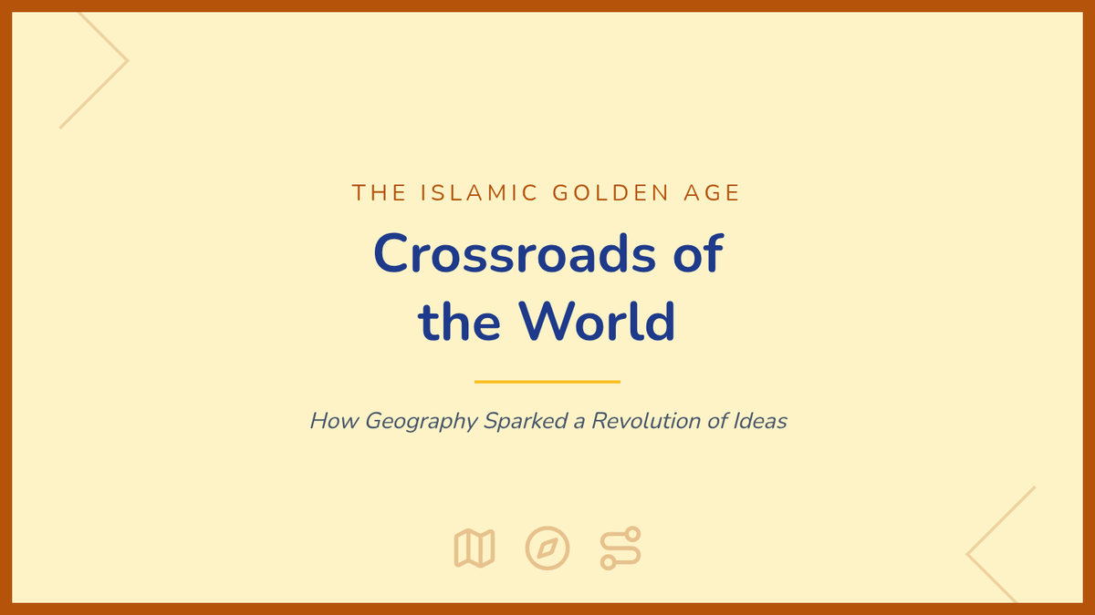 Students explore the intellectual, cultural, and geographic expansion of the Islamic world during the European 'Dark Ages,' focusing on the House of Wisdom and the diffusion of knowledge. The sequence culminates in a museum-style exhibit connecting these advancements to the later European Renaissance.