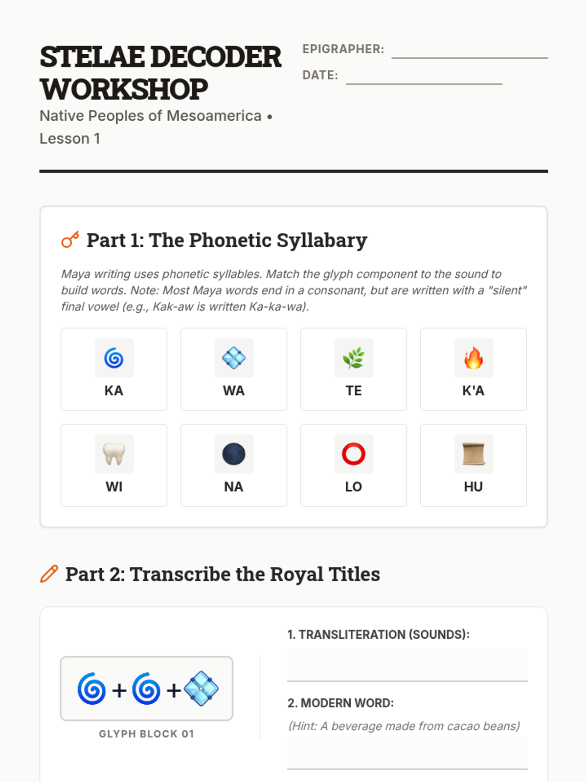 Stelae Decoder Worksheet
