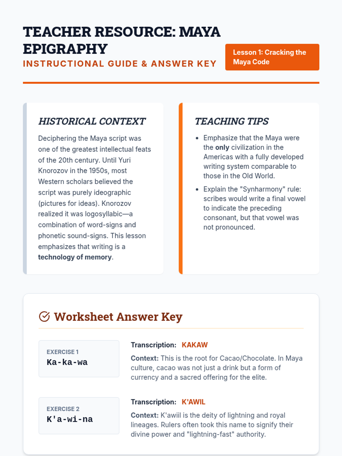 A deep dive into the intellectual achievements of the Maya, focusing on their unique mathematics, sophisticated writing system, and precise astronomical calendars. Students act as historians and decoders to understand how these systems built a powerful civilization.