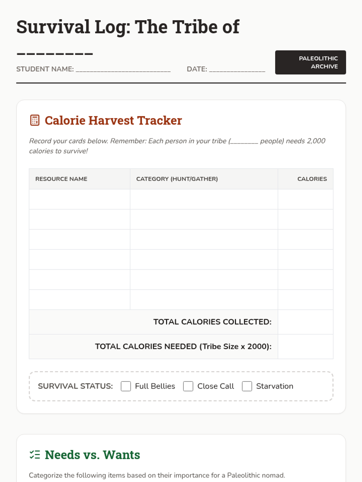 Survival Log Worksheet