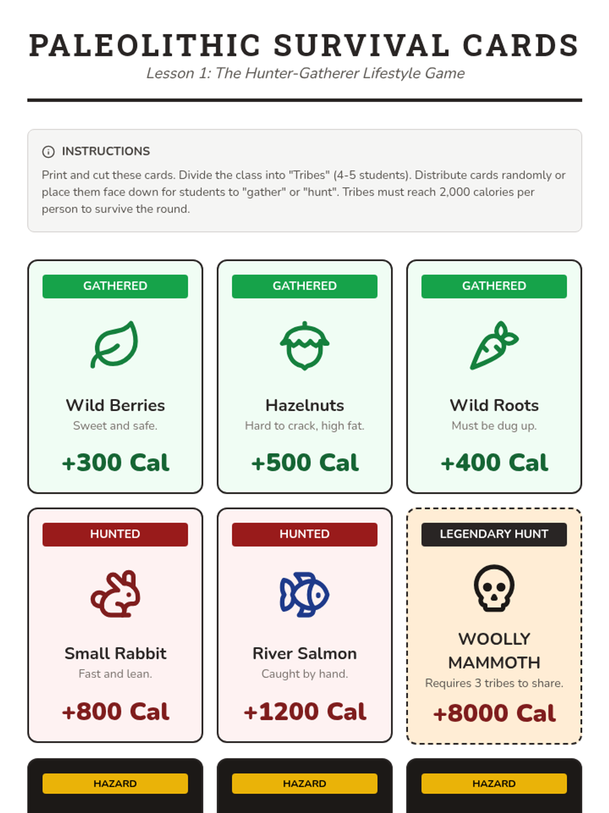 Calorie Survival Cards Activity