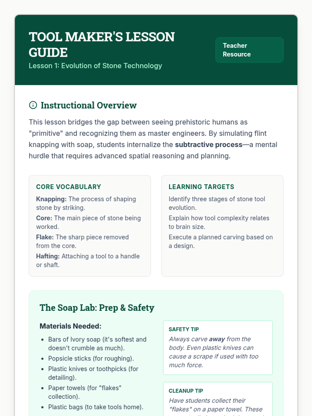 Tool Maker Teacher Guide