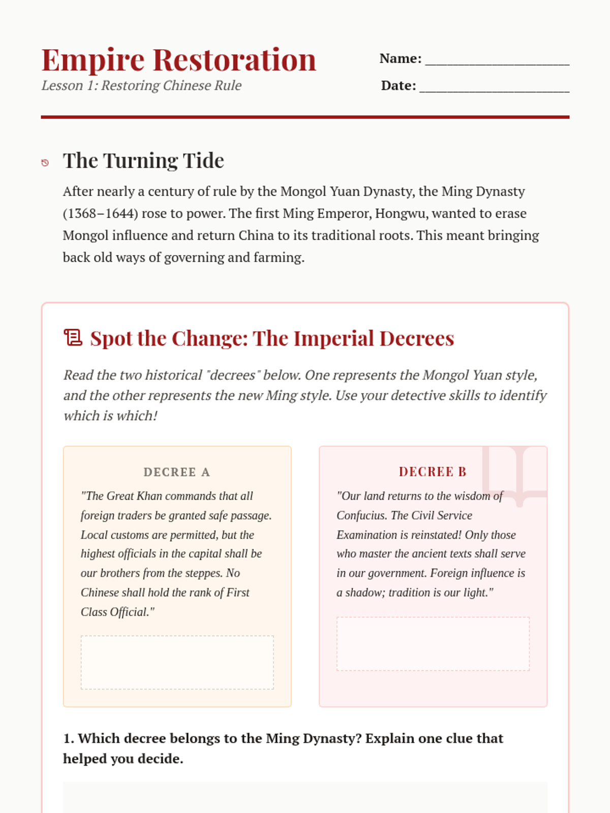 This sequence explores the transition from the late Middle Ages to the Renaissance, focusing on how the Black Death triggered social and economic shifts that paved the way for urban growth, art, and the printing press. Students analyze cause-and-effect relationships and the emergence of humanism and new technologies.